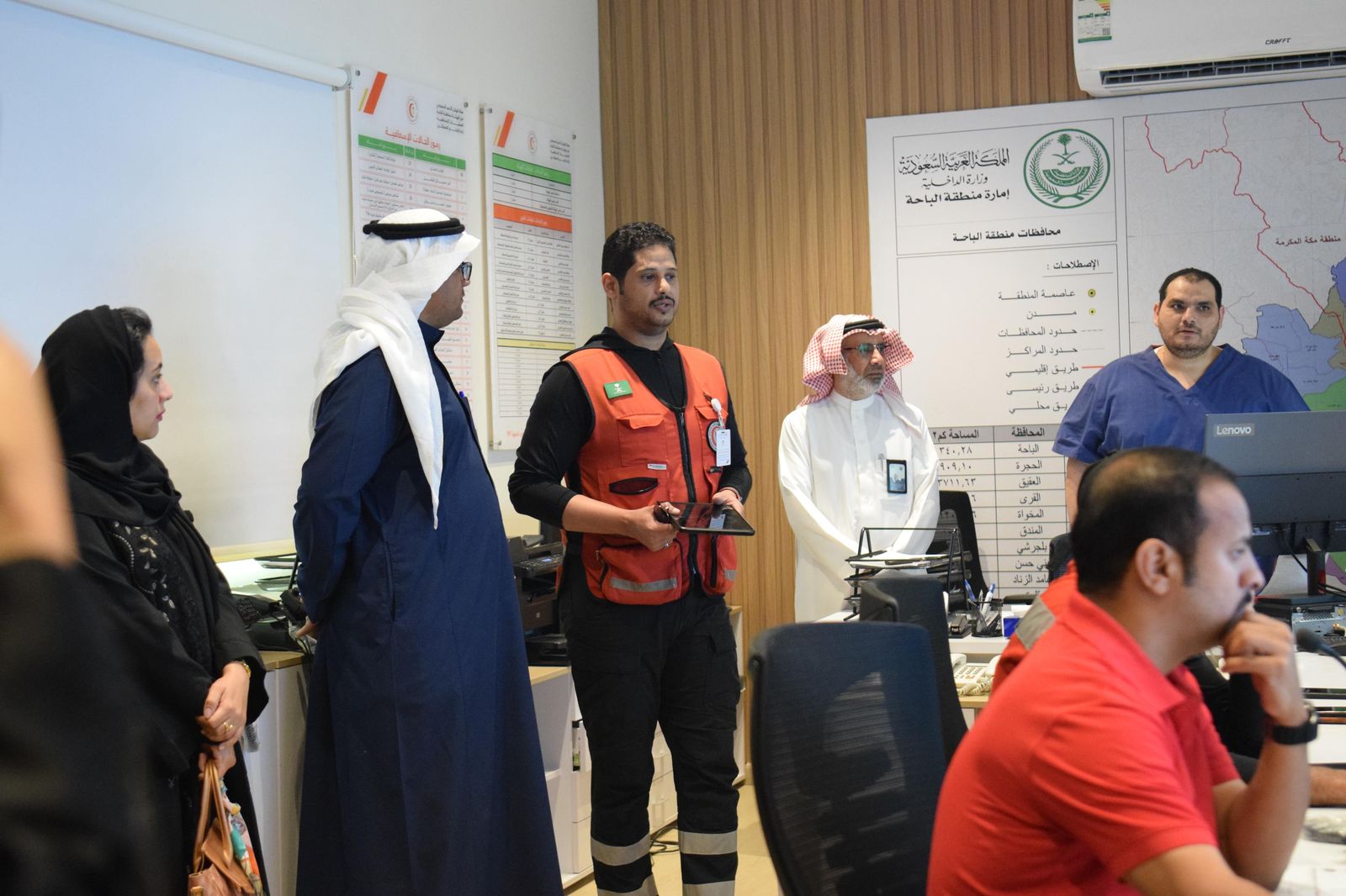 وكان في استقبال الوفد عدد من منسوبي غرفة العمليات، حيث قُدّم شرح مفصّل حول البنية التقنية المتطورة التي تم اعتمادها ضمن مبادرات التحول الرقمي، والتي ساهمت في رفع كفاءة الاستجابة للحالات الطارئة، وتسريع عمليات الاتصال والتنسيق مع الجهات ذات العلاقة.