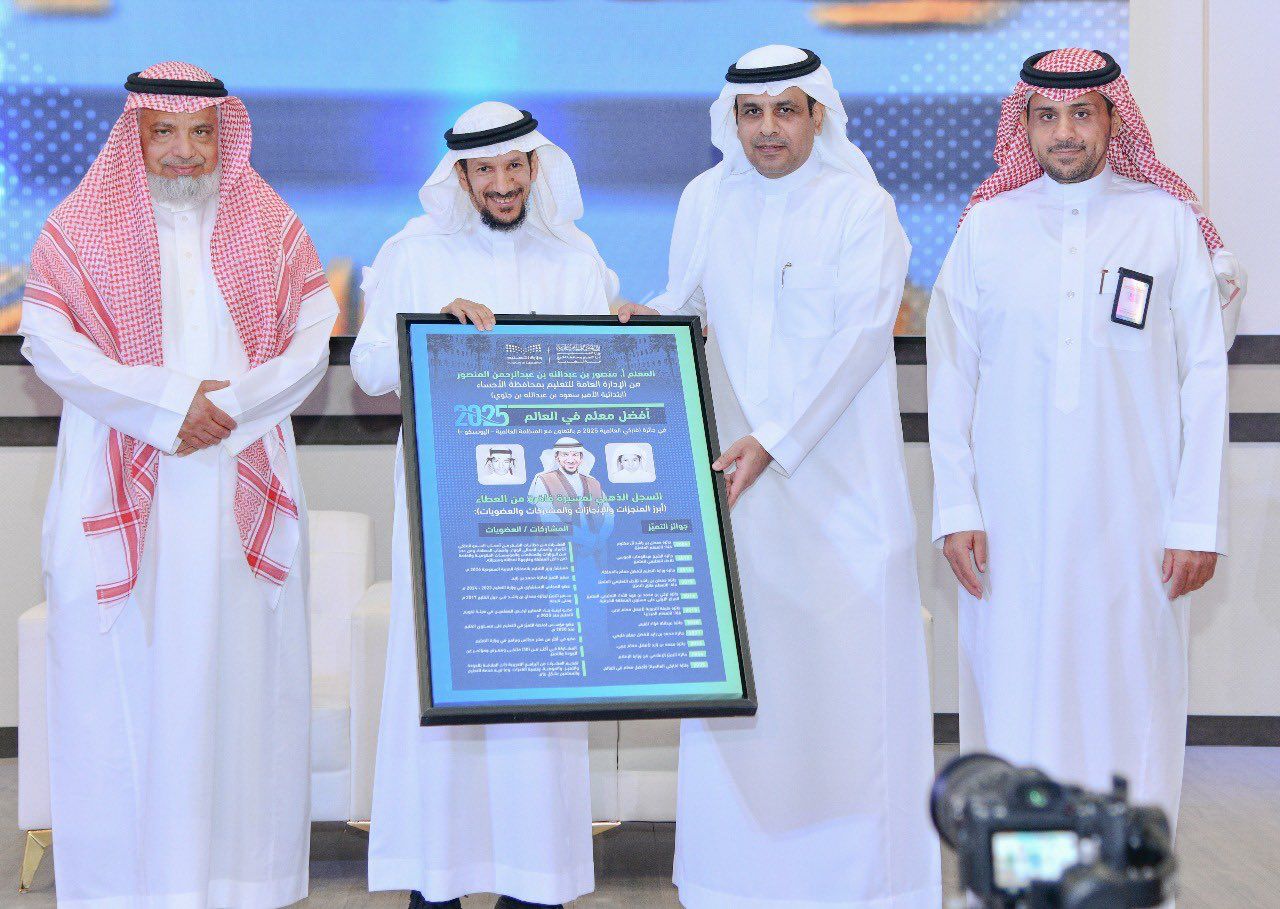 تلا ذلك كلمة لمدير التعليم أشاد فيها بجهود المعلم منصور في تقديم أساليب تربوية وتعليمية حديثة، مما أسهم في تحقيقه لجوائز دولية ومحلية وإقليمية عدة، توجها بلقب أفضل معلم في العالم، كما بارك له هذا الإنجاز الكبير متمنياً له مزيداً من التوفيق في مواصلة رسالته السامية ، مؤكدًا أن هذا الإنجاز يعكس حجم الرعاية والاهتمام اللذين توليهما القيادة الحكيمة- أيدها الله - لقطاع التعليم ومنسوبيه من معلمين ومعلمات وطلاب وطالبات ،