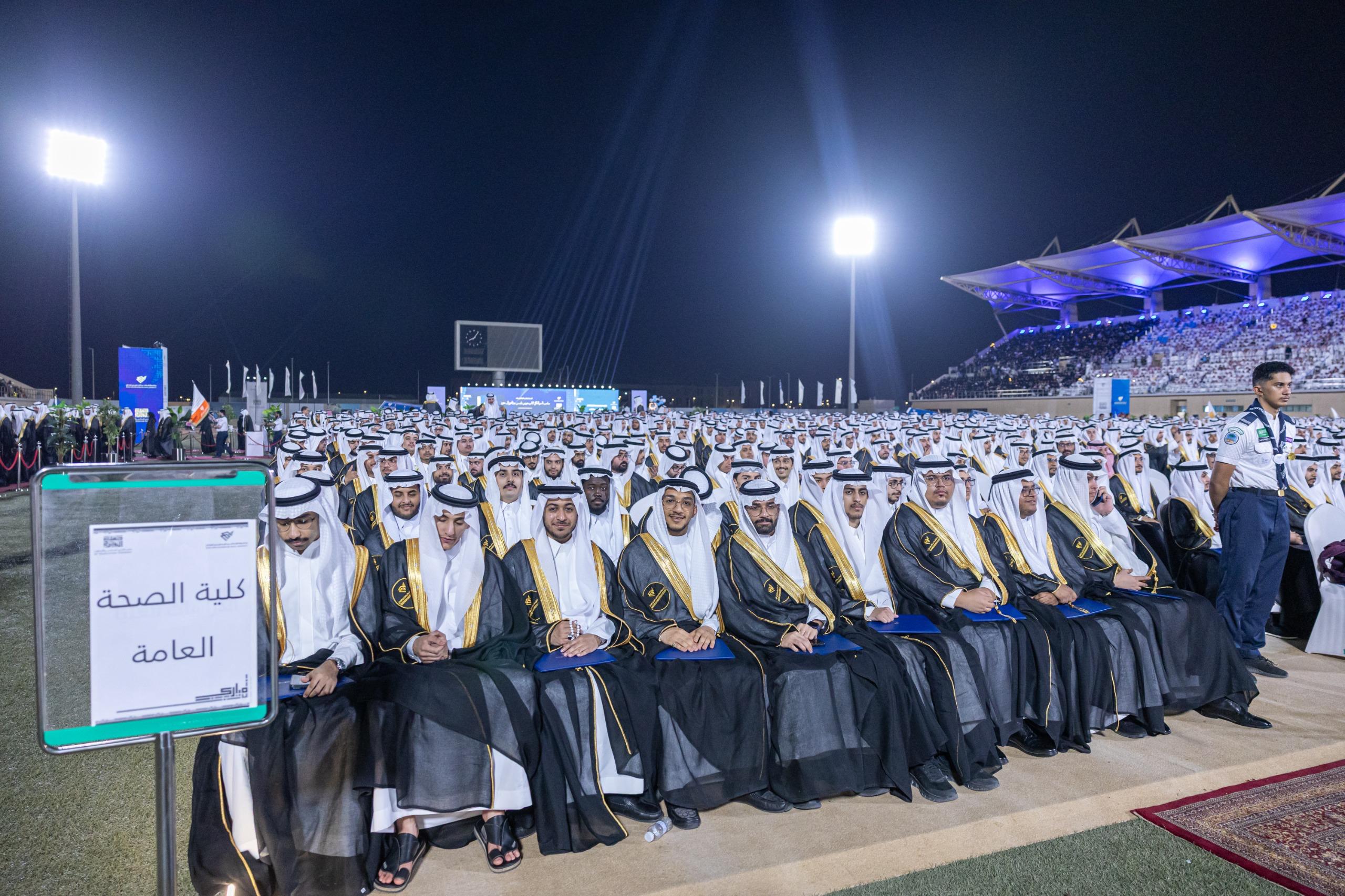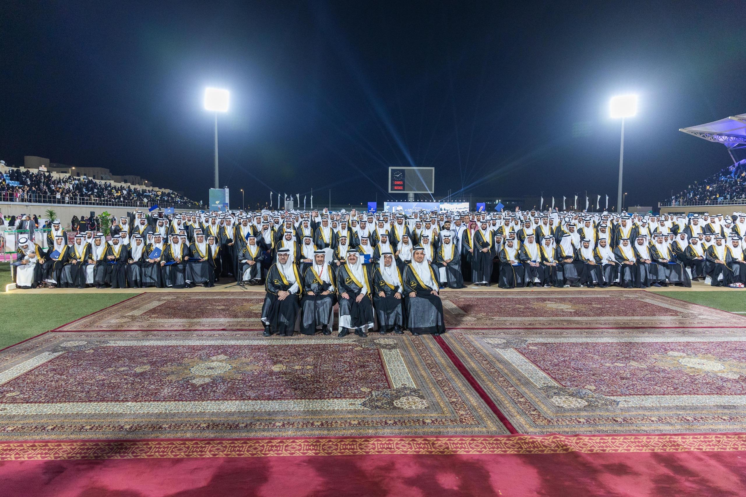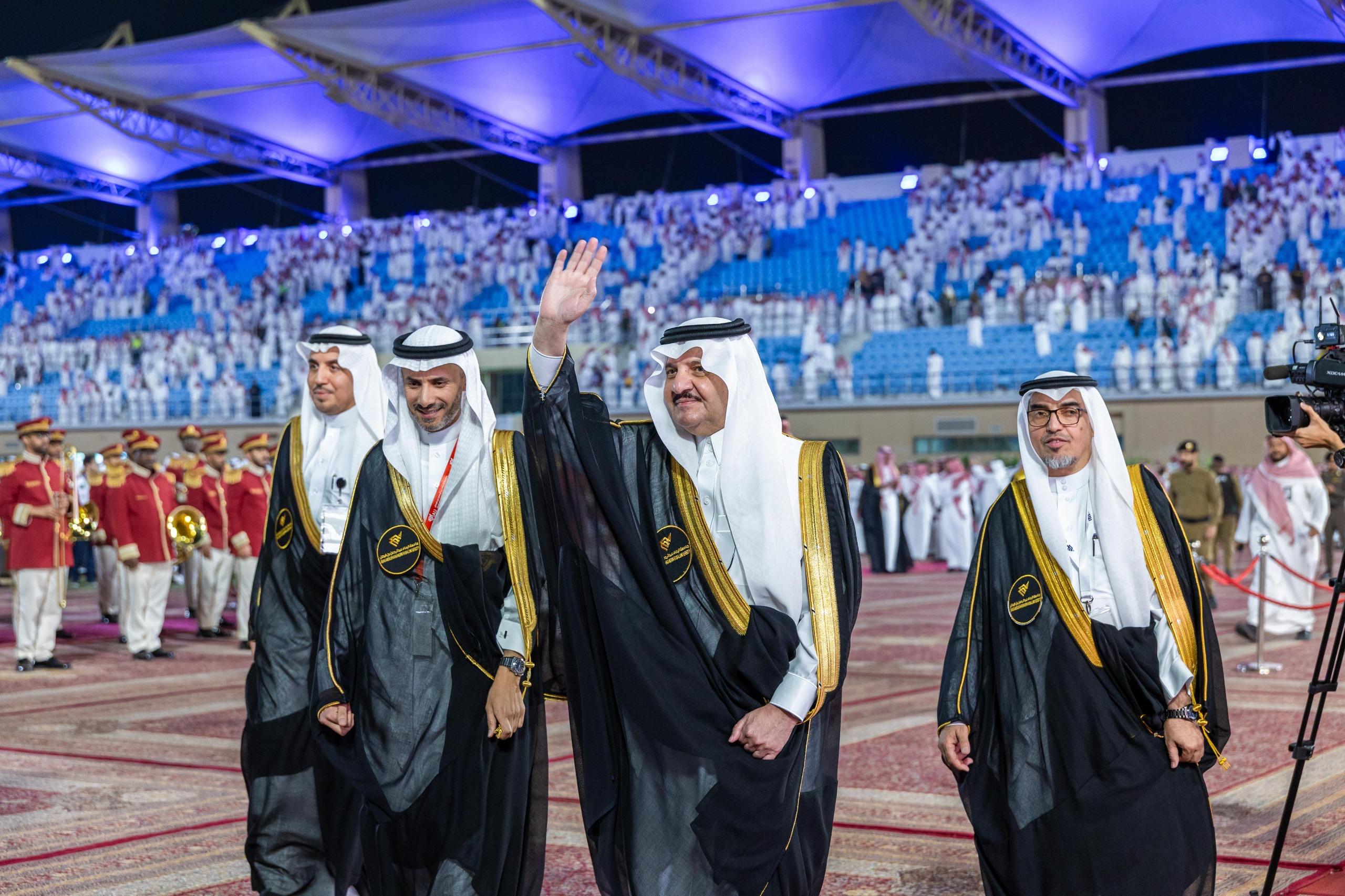 وقال سموه: “بتخرجكم اليوم، تنطلق مرحلة جديدة من الطموح والعمل، قائمة على العزيمة والولاء لهذا الوطن المعطاء، فأنتم من يُعتمد عليهم في صناعة المستقبل، وتحقيق تطلعات قيادتنا الرشيدة -حفظها الله-، والإسهام الفاعل في دفع عجلة التنمية، بما اكتسبتم من علوم ومعارف خلال رحلتكم الأكاديمية”.