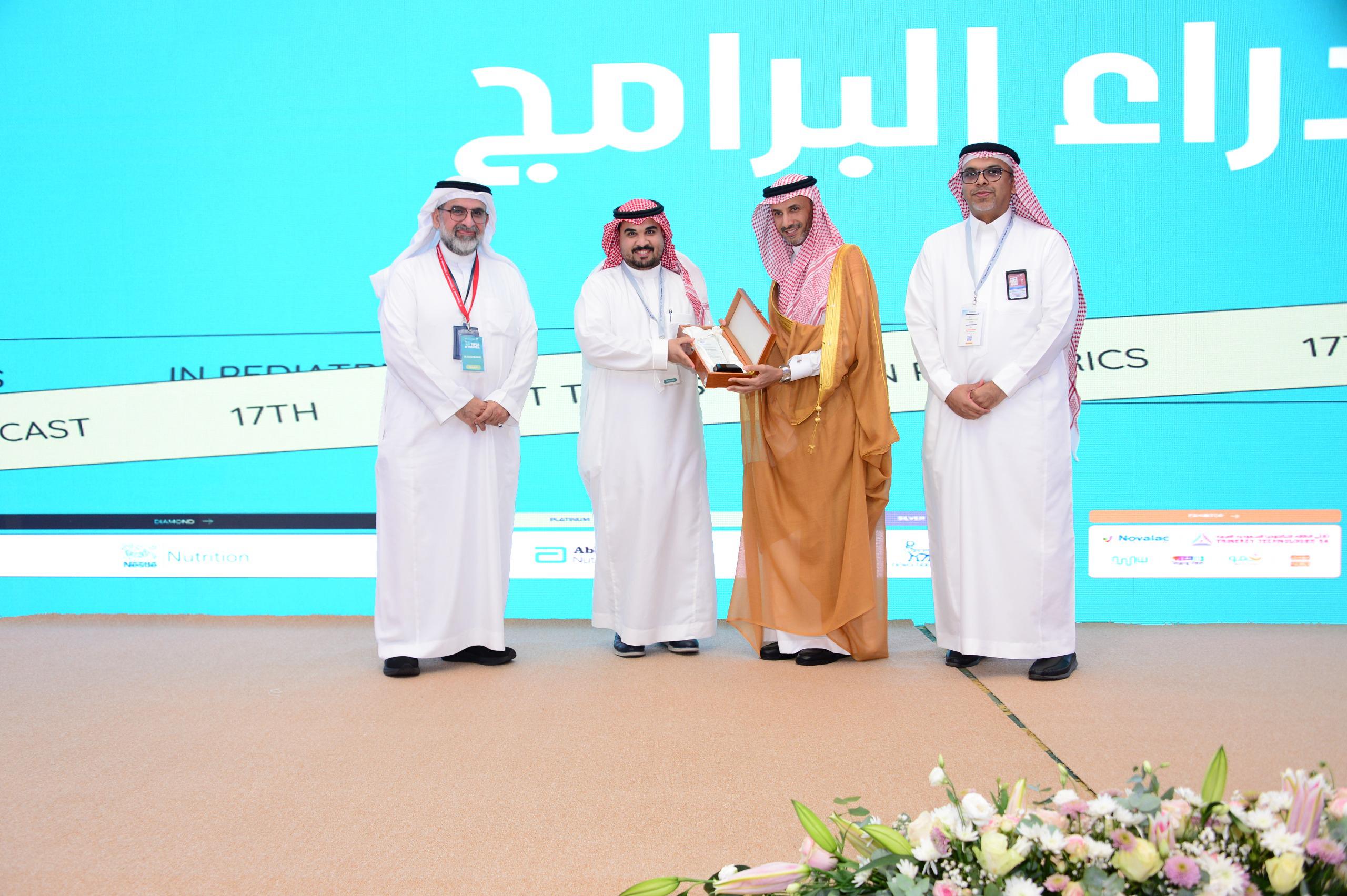 وأخيرا وكما تعودنا في كل عام فإننا نستغل هذه المناسبة لتكريم أشخاص أو جهات معينه ممن لهم أدوار ايجابيه لطب الأطفال وقد تم اختيار مدراء البرامج التدريبية في قسم طب الأطفال في مستشفى الملك فهد الجامعي نظير جهودهم وتفانيهم من أجل تدريب جيل من أطباء أطفال سيكونون بإذن اللّه مساهمين في تحقيق أهداف تحول القطاع الصحي من ضمن رؤية 2030 سعيا لتحسين جودة وكفاءة الخدمات الصحية وتعزيز صحة الطفل، فلهم منا جزيل الشكر والامتنان .
