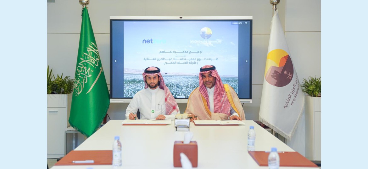 أعلنت هيئة تطوير محمية الملك عبد العزيز الملكية عن توقيع مذكرة تفاهم مع شركة الحياد الصفري للخدمات البيئية "نت زيرو"، إحدى الشركات الوطنية الرائدة في مجال تقنيات المناخ والتشجير الذكي، لإطلاق مشروع أول محمية ذكية في المملكة ودول الخليج، وذلك في إطار تعزيز الاستدامة البيئية وتشجيع السياحة البيئية، بالإضافة إلى دعم الأبحاث العلمية داخل المحمية، وتحويلها إلى نموذجٍ بيئيٍّ مبتكر، تماشيًا مع مستهدفات رؤية المملكة 2030 ومبادرة "السعودية الخضراء".
