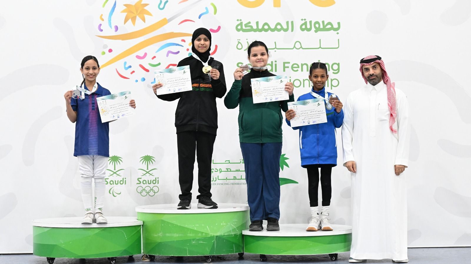ففي منافسات تحت 11 عام حققت كوثر الأبيض (النور) الميدالية الذهبية في سلاح الابيه ، ونالت دانة العميري (النهضة) الميدالية الذهبية في سلاح الشيش، فيما حصدت حصة عبدالله قحم (النصر)، ذهبية سلاح السيبر.