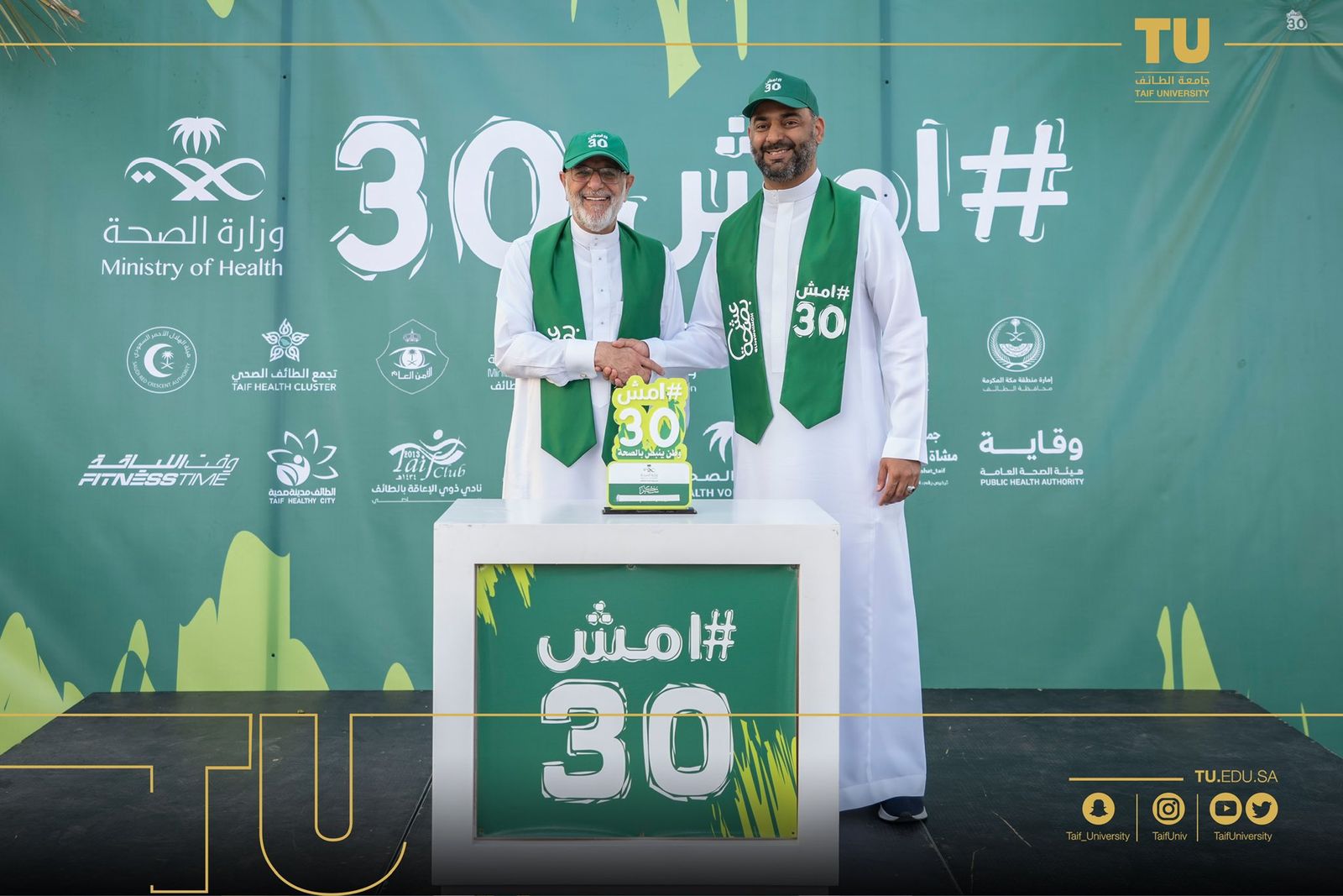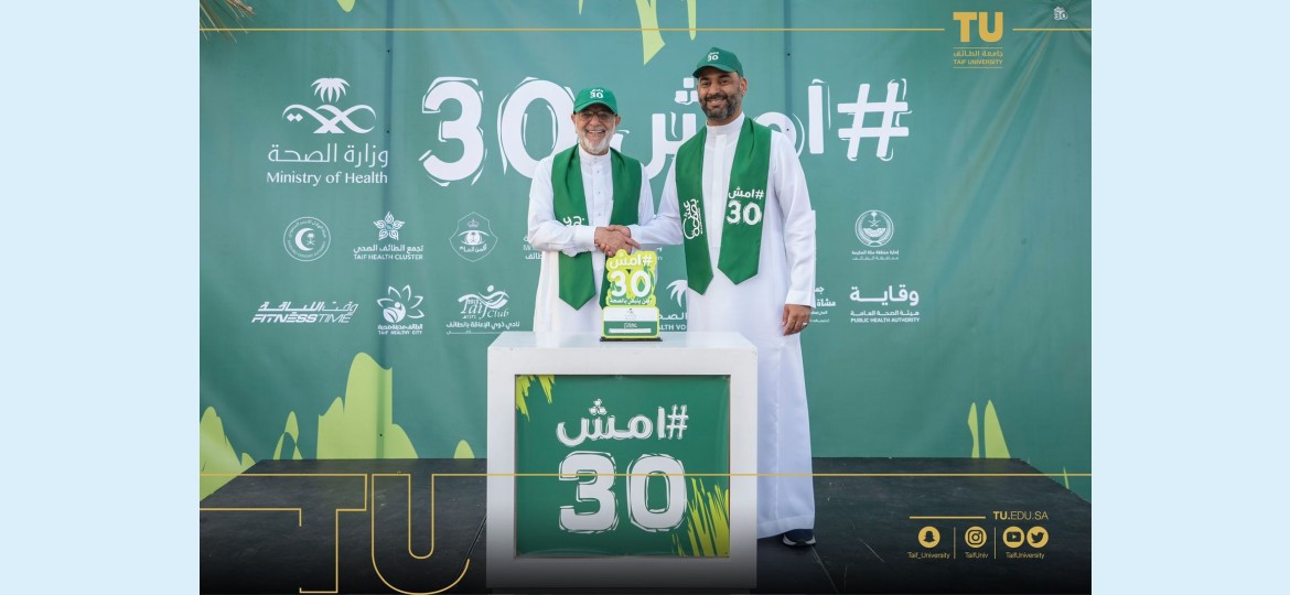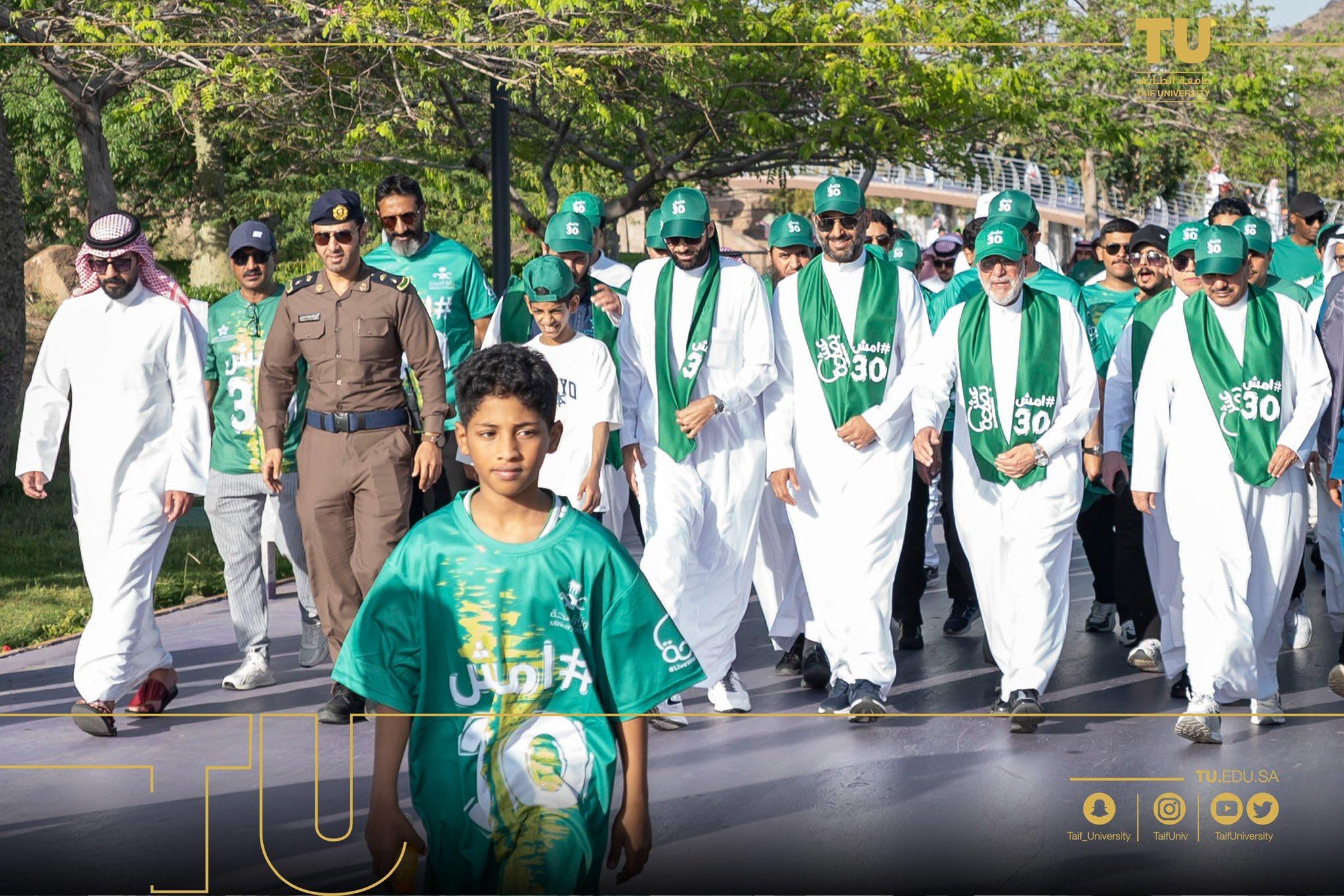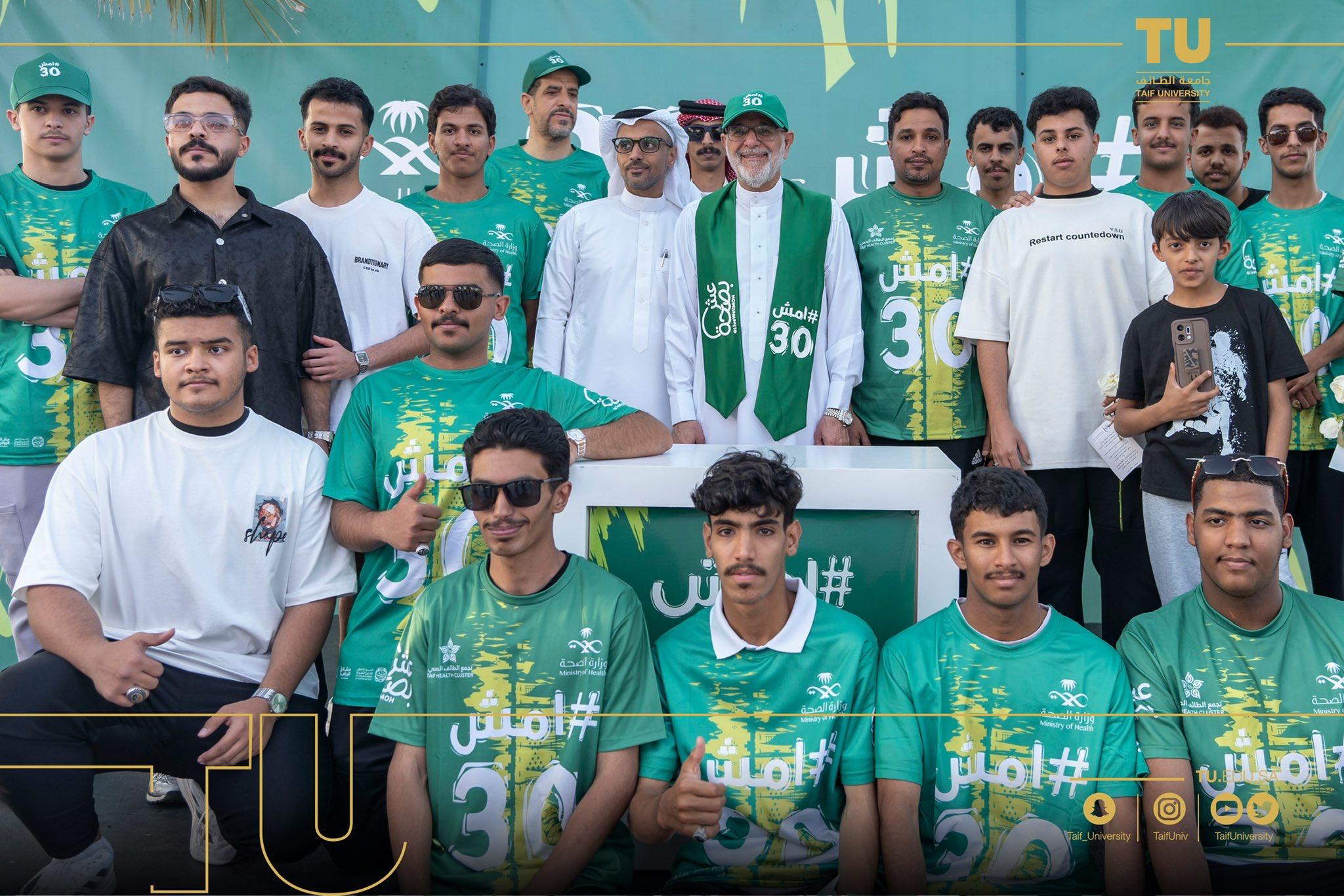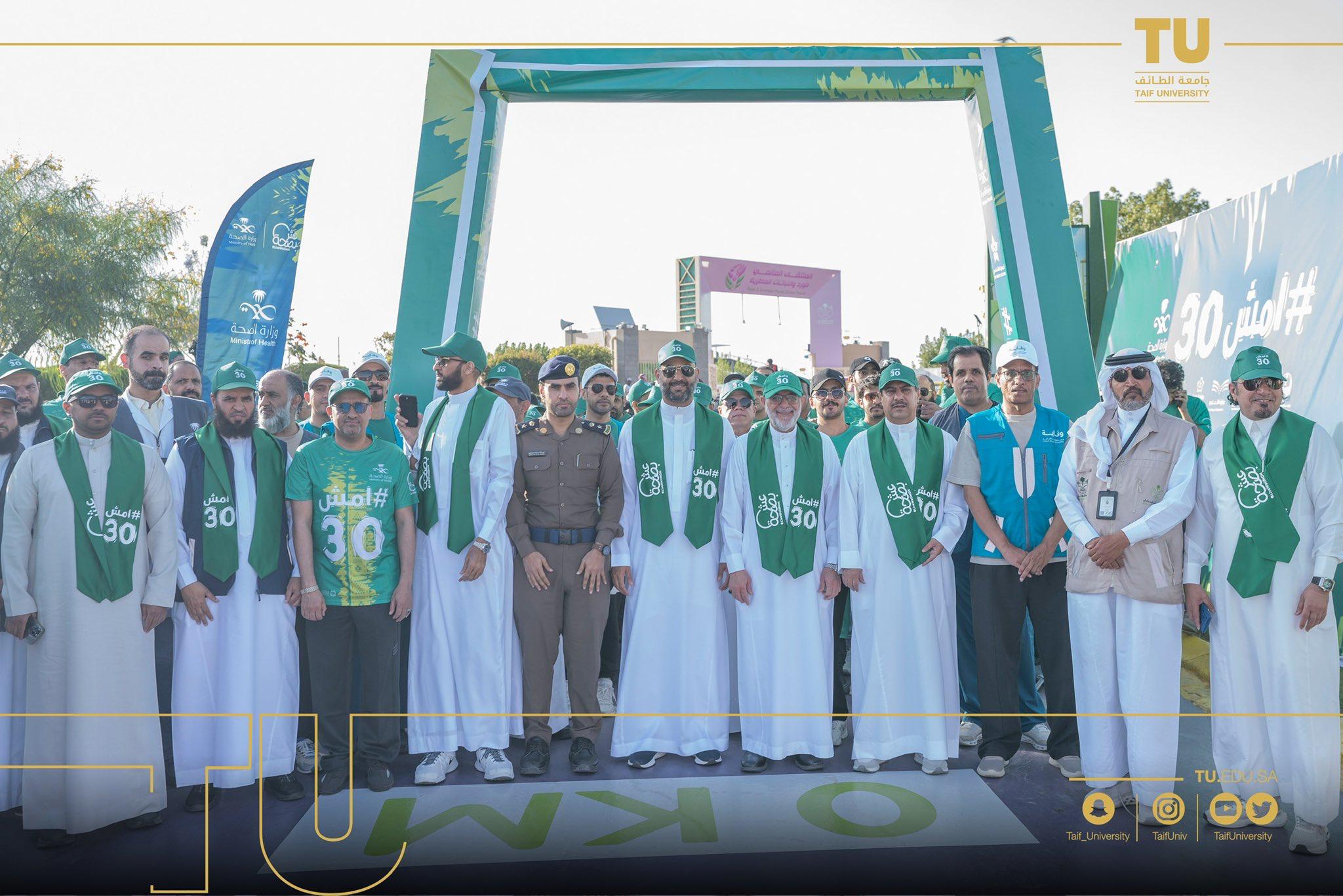 شاركت جامعة الطائف بتألق في المبادرة الوطنية “ امشِ 30”، مساء اليوم السبت في منتزة الردف بدعم ومشاركة من رئيس جامعة الطائف أ. د. يوسف بن عبده عسيري وعميد شؤون الطلاب ووكيل الأنشطة الرياضية بالعمادة وعدد كبير من منسوبي وطلاب الجامعة بالتعاون مع فرع وزارة الصحة