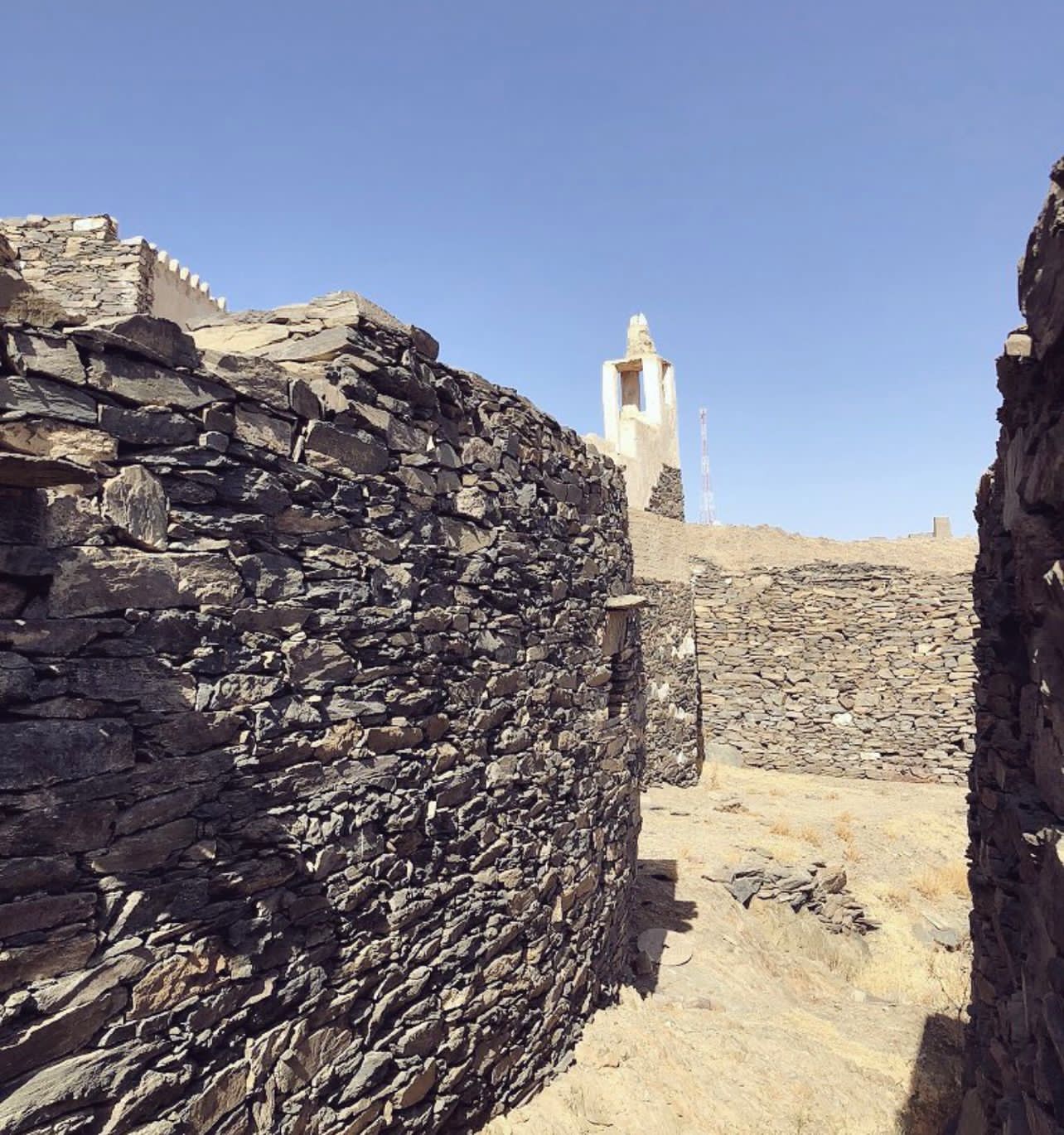 تقارب المباني فيها، شكّل مثالًا للترابط الاجتماعي في العصر الذي أنشئت فيه على امتداد جبال بني سعد، وهو ما أكسب أهلها تميزًا عن بقية أهالي القرى الأخرى، فيما يعتلي القرية حصنين دفاعيين، إلى جانب مسجد في قلبها وساحة للاحتفال والاجتماعات الرسمية.