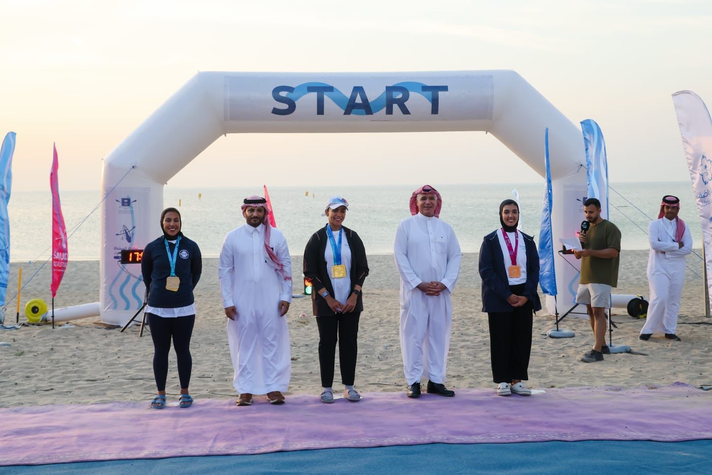 وقد شهدت مراسم التتويج حضور رئيس الاتحاد السعودي للتجديف، علي حسين علي رضا، الذي عبّر عن سعادته بالمستوى الفني المميز للبطولة، وهنّأ الفائزين على إنجازاتهم، مؤكدًا أن هذه البطولة تمثل خطوة مهمة في نشر رياضة  التجديف  وتوسيع قاعدة ممارسيها في مختلف مناطق المملكة، والمساهمة في اكتشاف الأبطال الواعدين. كما حضر حفل الختام الأستاذ ذعار بن شجاع المطيري، مدير عام الخدمات المساندة بالهيئة الملكية للجبيل وينبع، والذي أثنى على جهود المنظمين والمشاركين، وأشاد بدور مثل هذه الفعاليات في دعم الرياضات البحرية وتعزيز النشاط الرياضي في مدينة الجبيل.