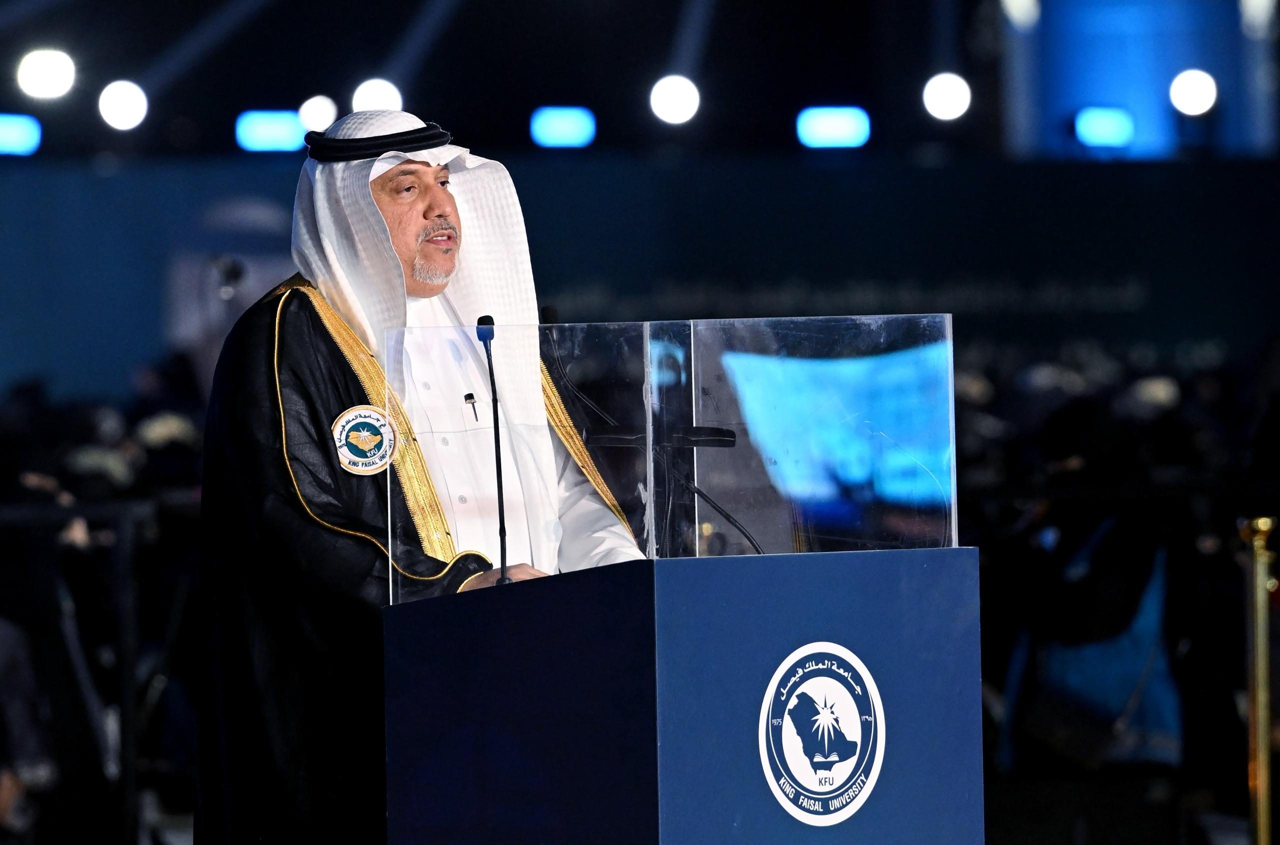 نيابةً عن صاحب السمو الملكي الأمير سعود بن نايف بن عبدالعزيز، أمير المنطقة الشرقية، رعى صاحب السمو الملكي الأمير سعود بن بندر بن عبدالعزيز، نائب أمير المنطقة الشرقية، مساء امس الأربعاء، حفل تخريج الدفعة السادسة والأربعين من طلاب وطالبات جامعة الملك فيصل، وذلك في استاد الجامعة، بحضور صاحب السمو الملكي الأمير سعود بن طلال بن بدر، محافظ الأحساء، وعدد من أصحاب المعالي والفضيلة والسعادة من مسؤولي المنطقة والجامعة، وجمع غفير من أولياء الأمور والضيوف.