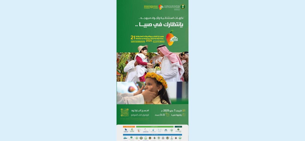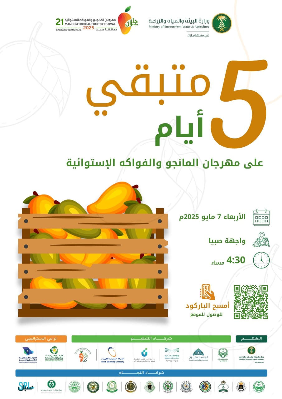 يشارك المركز الوطني لتطوير أبحاث الزراعة المستدامة "استدامة" كشريك استراتيجي في مهرجان مانجو جازان21، والذي سيقام في محافظة صبيا بمنطقة جازان، إعتباراً من يوم الأربعاء القادم 7 مايو 2025 ،والذي تنظمه وزارة البيئة والمياه والزراعة ممثلة بفرعها بالمنطقة.