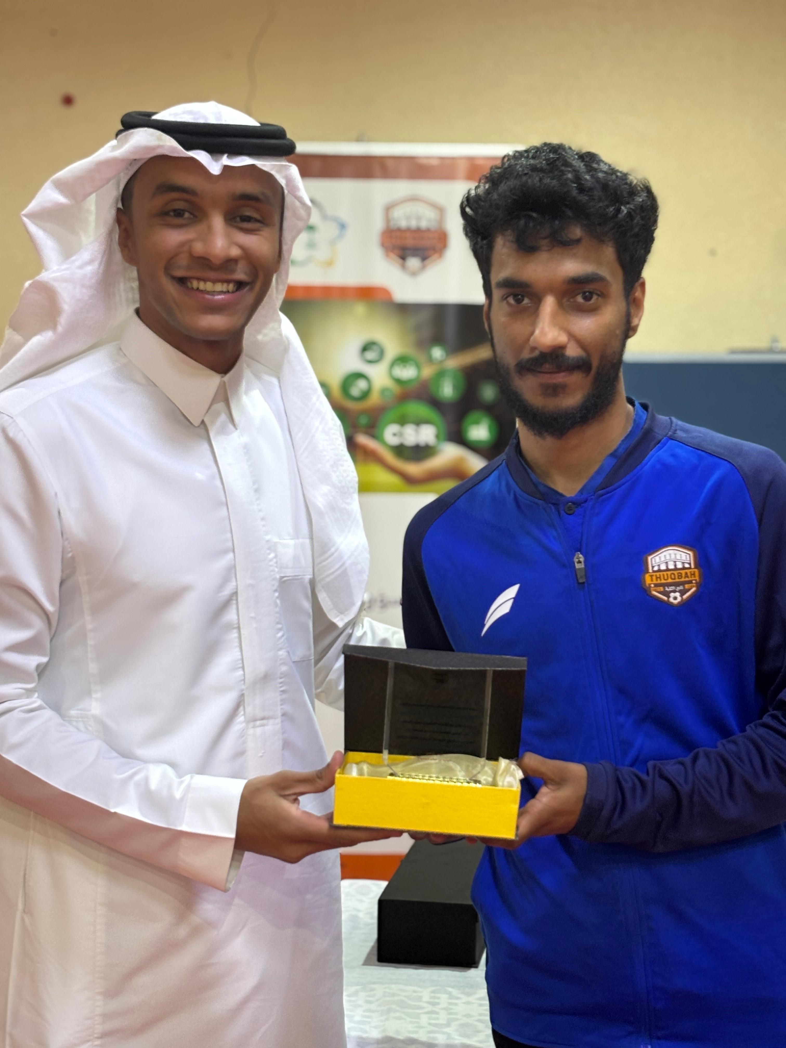 أقامت إدارة نادي الثقبة حفل تكريم لفريق كرة قدم الصالات تحت 20 سنة، بمناسبة صعوده إلى الدوري الممتاز للموسم الرياضي 2024–2025 م وذلك يوم الخميس الموافق 1 مايو 2025 م ضمن إطار اهتمام نادي الثقبة بتعزيز مسؤوليته المجتمعية تجاه لاعبيه وذلك تقديرًا لعطائهم وتحفيزًا لمسيرتهم الرياضية.