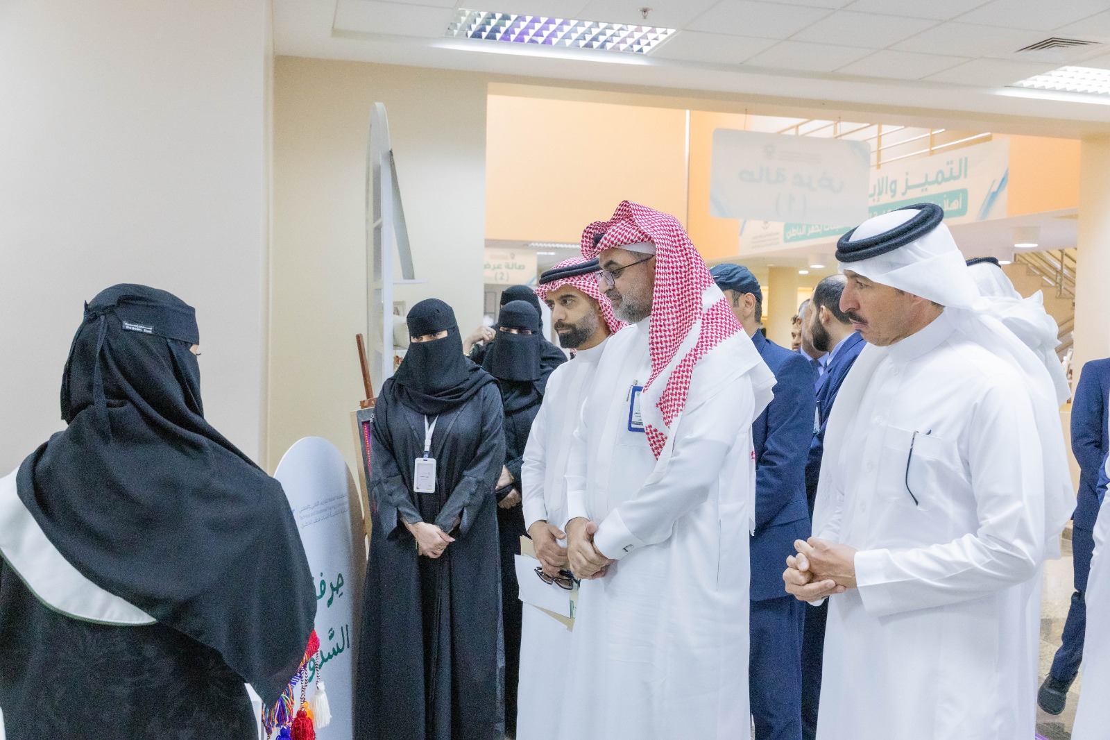 وشهد "القحطاني" جولة في أرجاء المعرض المصاحب، حيث اطلع على محتوياته المتنوعة التي تضم العديد من الأركان المخصصة للمشغولات اليدوية، وشارك في المعرض قسم تقنية التسويق والابتكار، إلى جانب ورش عمل من أقسام تقنية التزيين والتجميل وتصميم وتصنيع الأزياء، كما اشتملت الفعاليات على أركان خاصة بوحدة الأنشطة والجودة والمسؤولية الاجتماعية.