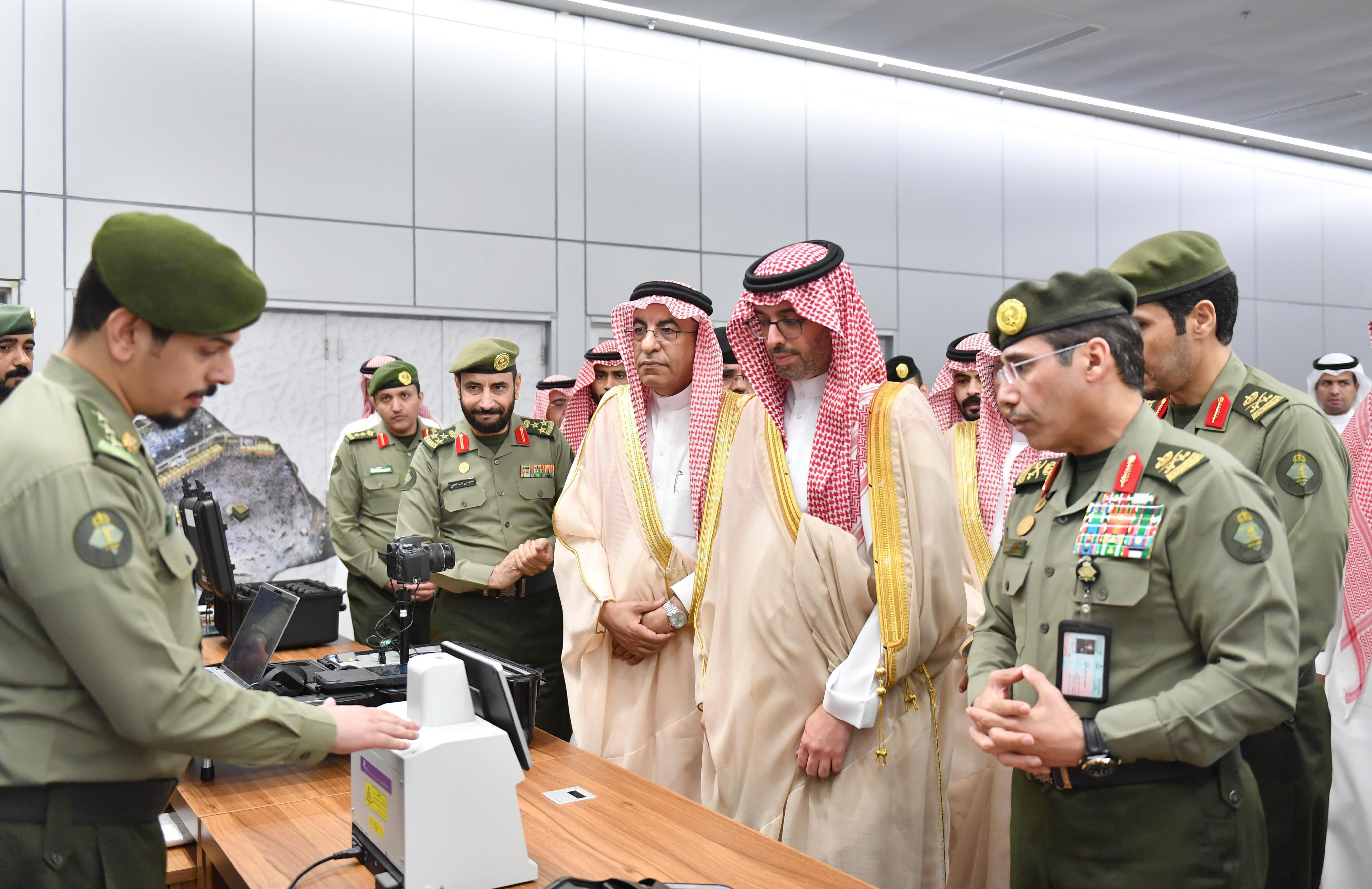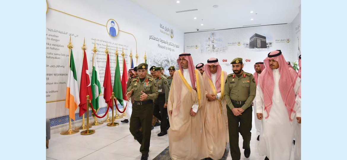 كما تفقّد سموه, صالة الجوازات بالمطار واطّلع على التجهيزات البشرية والتقنية الموفرة لخدمة ضيوف الرحمن، واطلّع على مبادرة "طريق مكة" التي تنفذها وزارة الداخلية في عامها السابع، والجهود المبذولة لخدمة الحجاج.