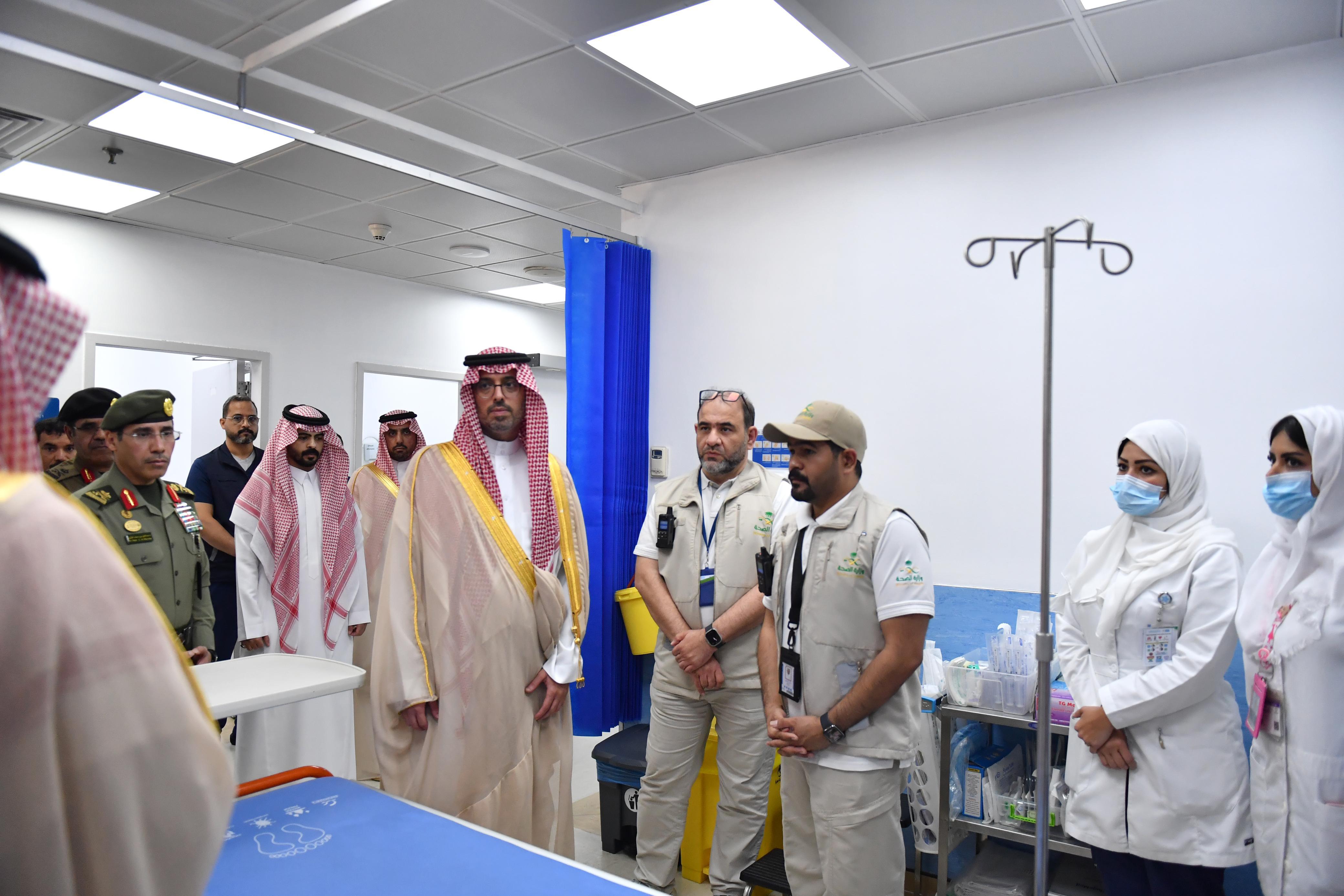 واطلّع سموه على أعمال المركز الصحي بصالات الحج والعمرة والخدمات المقدمة لضيوف الرحمن, وجهوده في تكثيف التوعية الصحية لرفع مستوى الوعي الصحي بين الحجاج, وضمان التزامهم بالإرشادات الصحية للحفاظ على صحتهم وسلامتهم.