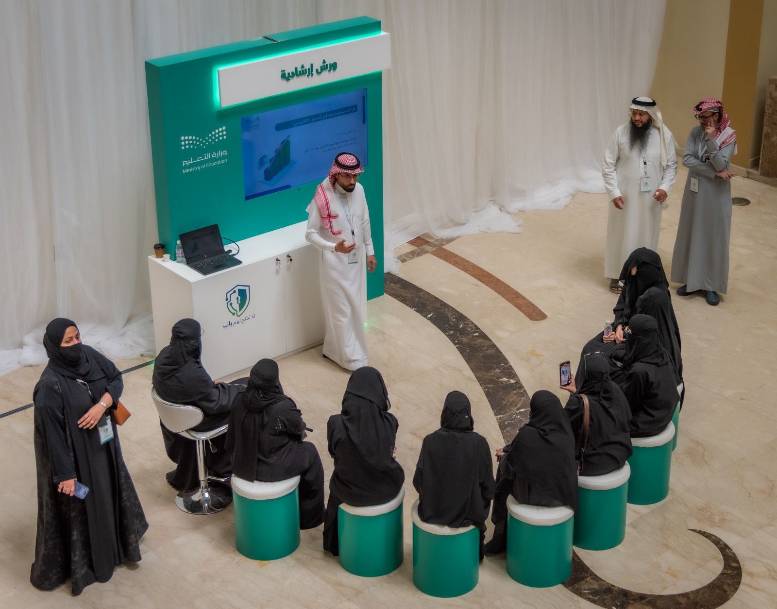"لا تفتح لهم باب" جزء من حملة توعوية تقوم بها وزارة التعليم، وأن التطور التقني يقابله ارتفاع في المخاطر السيبرانية، كما أن أركان المعرض المتعددة تشرح الطرق التي يستخدمها المهاجمون للوصول إلى الأنظمة سواءً على مستوى بيئة العمل أو على المستوى الشخصي.