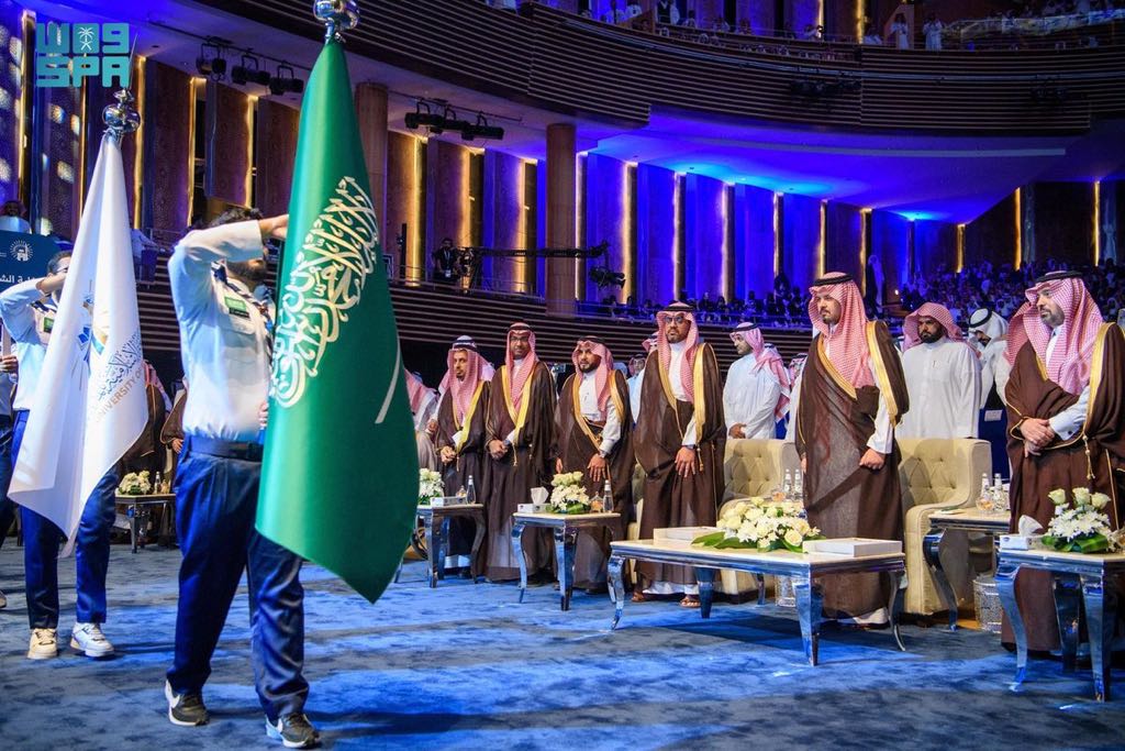 وأشار إلى أن الجامعة قدّمت أكثر من (65,000) مقعد دراسي لأبناء الوطن، إسهامًا في إعداد كفاءات وطنية تتحلى بالعلم وروح المسؤولية، مؤكدًا أن الخريجين لا يغادرون القاعات الدراسية فحسب، بل ينطلقون إلى أوطانهم سفراء للعلم، وحملةً لرسالة الإسلام، وروّادًا للتعايش والاعتدال وخدمة الإنسان.
