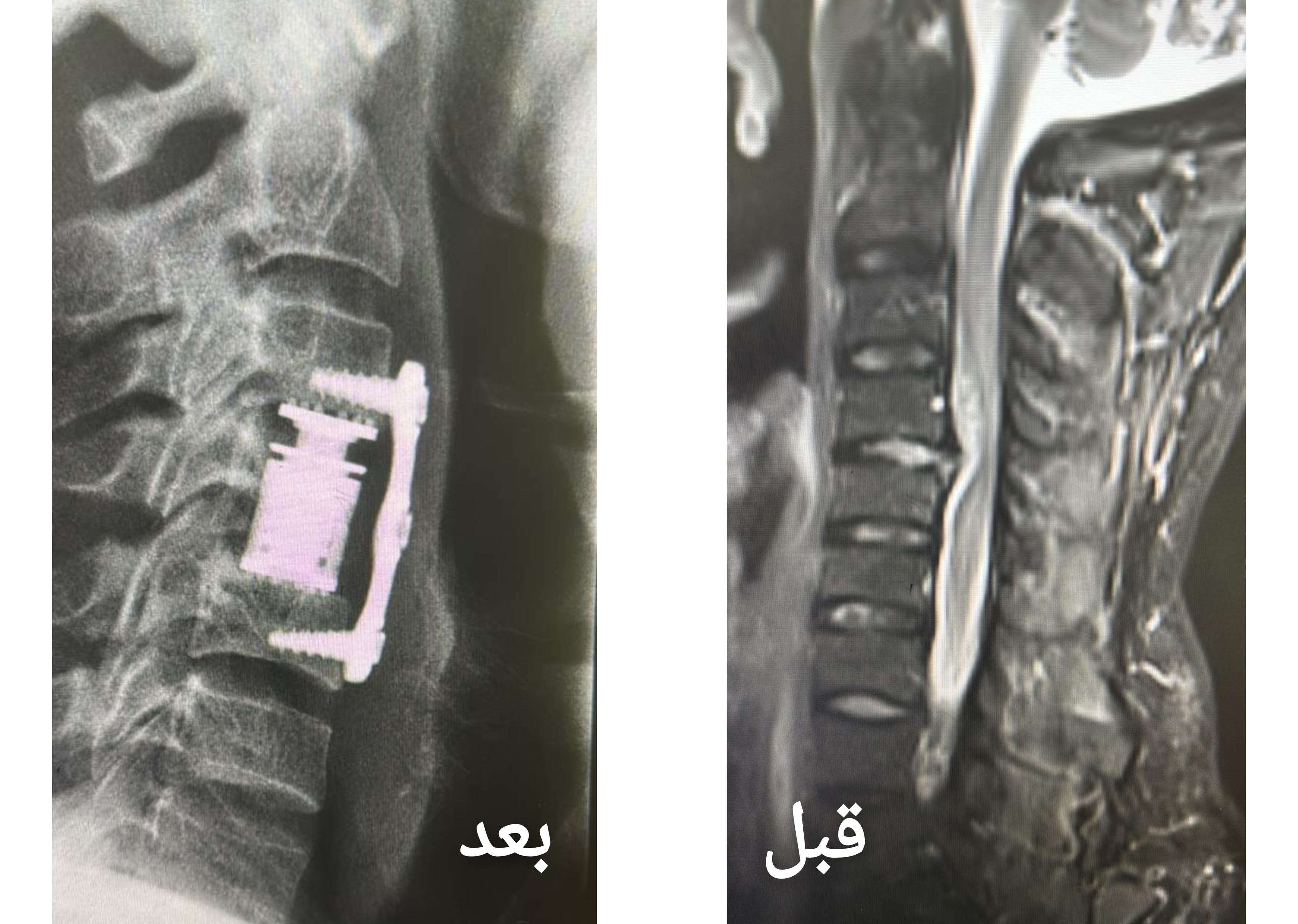وبعد إجراء الفحوصات اللازمة، تبيّن وجود انزلاق غضروفي شديد ضاغط على الحبل الشوكي.