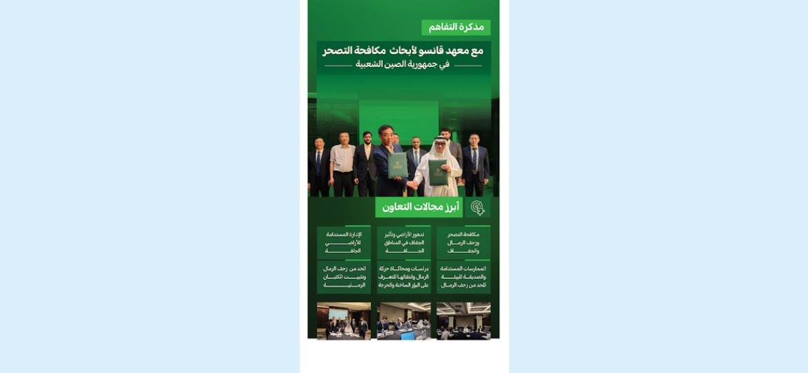 وتهدف المذكرة إلى تعزيز التعاون المشترك في مجالات مكافحة التصحر وزحف الرمال والجفاف، وتدهور الأراضي وتأثير الجفاف في المناطق الجافة، والإدارة المستدامة للأراضي الجافة.