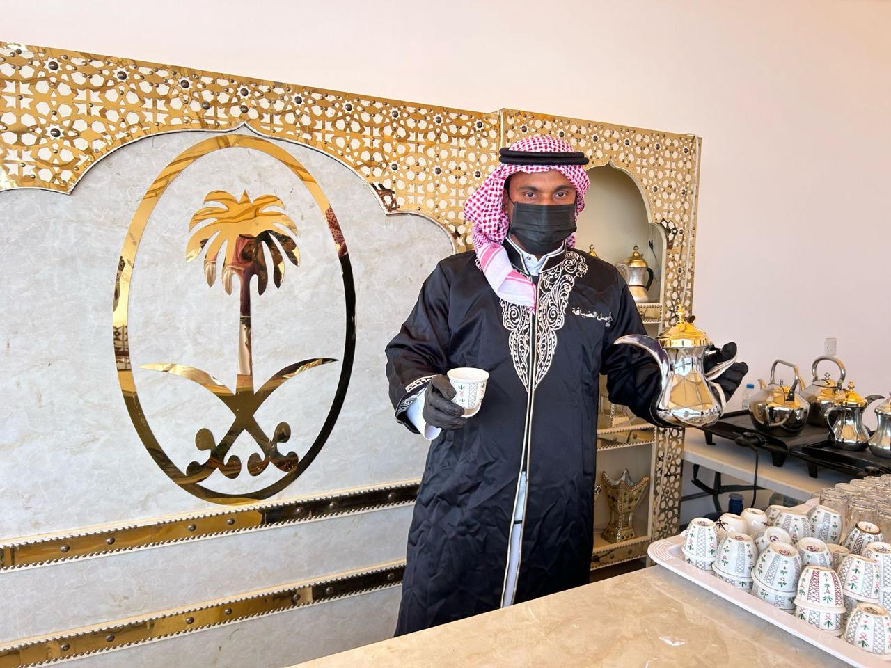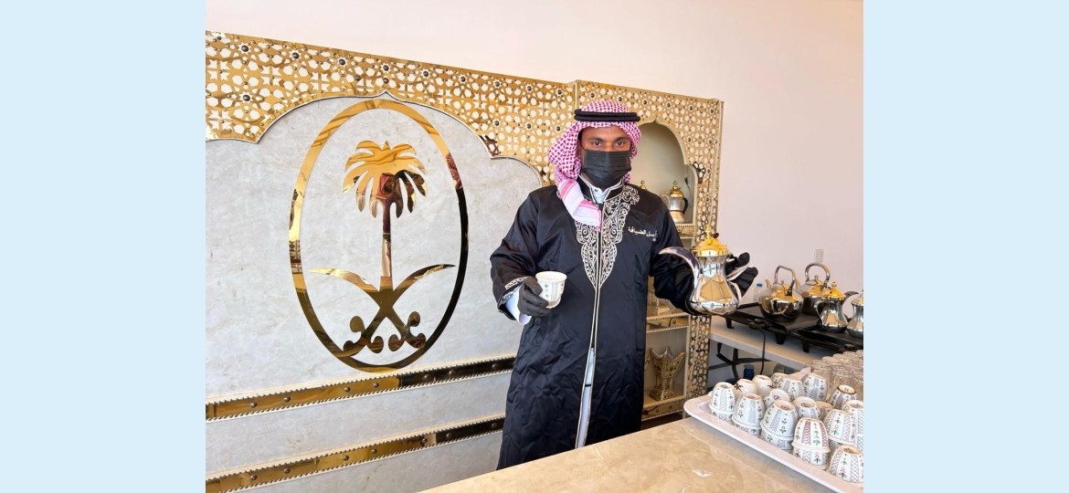 - الضيافة والترحيب : حيث قدم المتطوعون والمتطوعات  القهوة السعودية  والورد كرمز للترحاب،