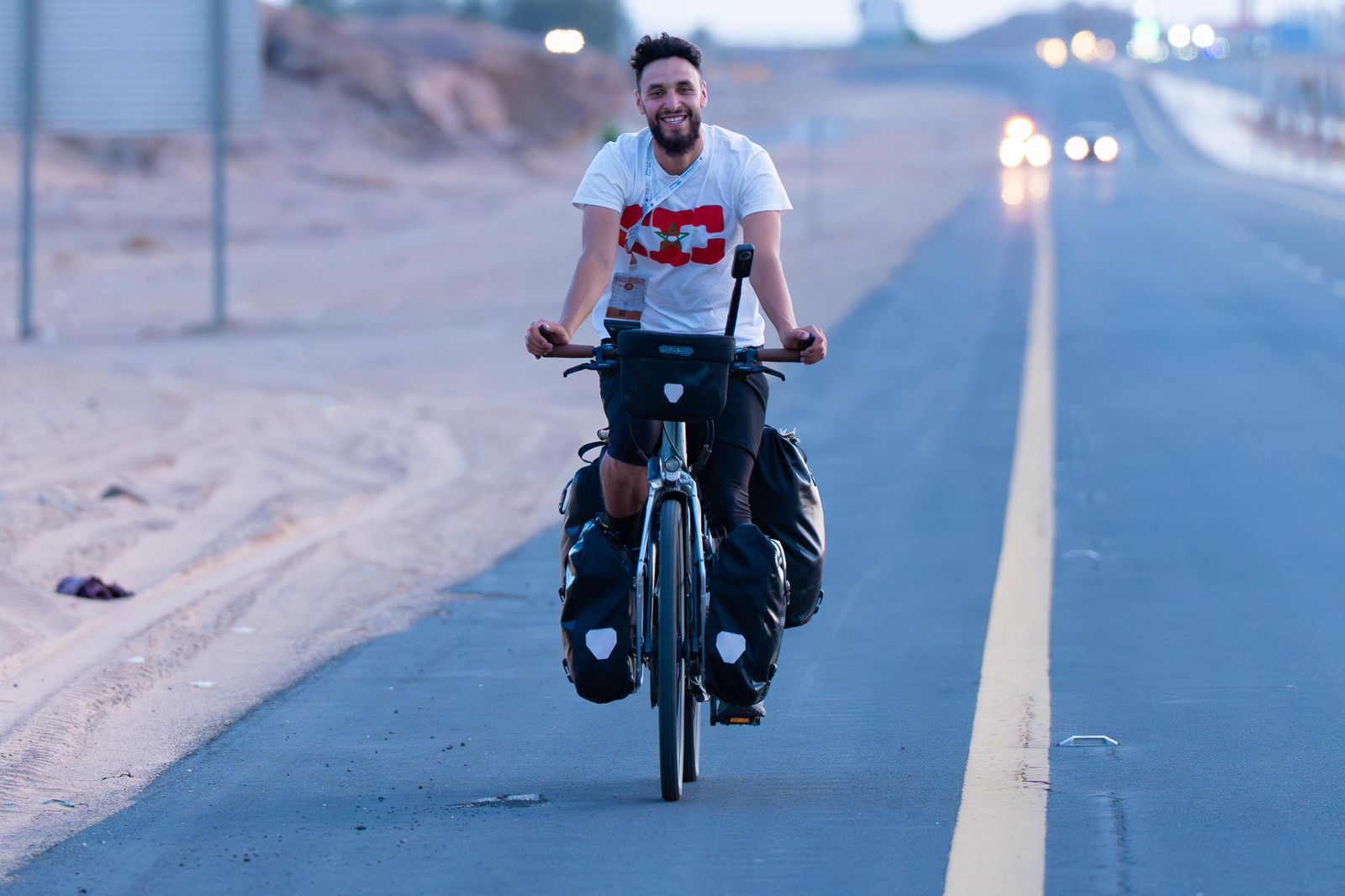 على مدى أكثر من ثلاثة أشهر، عبر أنس الرزقي طرقًا ممتدة بين مدن وقرى في أوروبا والشرق الأوسط، من بلجيكا مرورًا بألمانيا، والنمسا، وإيطاليا، والبوسنة والهرسك، وغيرها من بلدان القارة العجوز، وصولًا إلى تركيا، حيث اجتاز مضيق البوسفور إلى الضفة الآسيوية، وصولا إلى الأردن، حيث استقبلته وجوهٌ طيبةٌ وقلوبٌ مفتوحة في كل محطة توقف عندها. "واجهت تحديات لا تُحصى: من تقلبات الطقس إلى الشعور بالوحدة أحيانًا، لكن ما كان يمدّني بالقوة دائمًا هو الدعوات الصادقة والابتسامات الدافئة ممن قابلتهم في طريقي"، هكذا روى أنس تفاصيل رحلته بابتسامة صادقة.