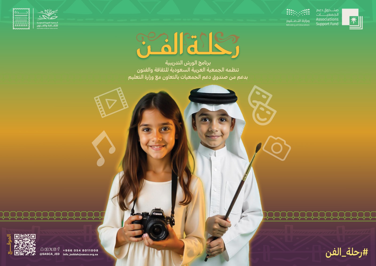 تنظم  الجمعية العربية السعودية  للثقافة والفنون؛ بالتعاون مع وزارة التعليم، وصندوق دعم الجمعيات بوزارة الثقافة، برنامج "رحلة الفن" الذي تقدم من خلاله عدداً من الورش التدريبية الفنية، مستهدفة ٣٦٠ طالباً وطالبة في إدارات التعليم بمدن الرياض والدمام وجدة، على مدى خمسة أيام في الفترة من ١٨ إلى ٢٢ مايو الجاري.