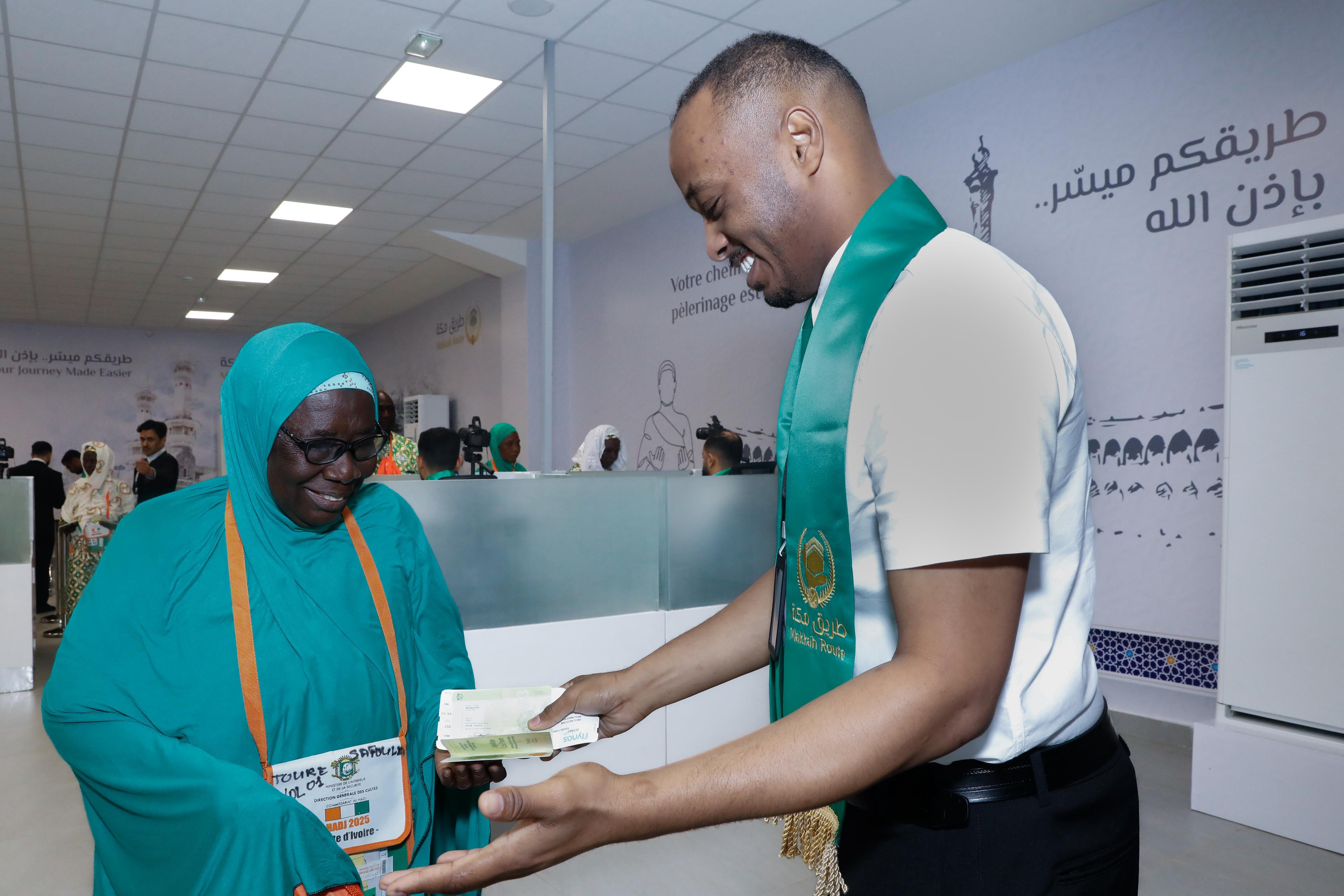 غادرت أولى رحلات المستفيدين من مبادرة "طريق مكة"، من جمهورية كوت ديفوار اليوم، إلى المملكة عبر صالة المبادرة في مطار أبيدجان الدولي ، متجهة إلى مطار الأمير محمد بن عبدالعزيز الدولي بمنطقة المدينة المنورة ، بحضور سفير خادم الحرمين الشريفين لدى جمهورية كوت ديفوار سعد بن بخيت القثامي ومعالي وزير الداخلية والأمن فاغوندو جوماندي ، ومعالي وزير النقل أمادو كوني ، ومعالي المستشار الخاص لرئيس الجمهورية المكلف بالشعائر الدينية والاجتماعية إدريسا كوني ، ورئيس المجلس الأعلى للأئمة والمساجد والشؤون الإسلامية عثمان جاكيتي ، ورئيس المجلس الأعلى للأئمة والمنظمات والمؤسسات السنية الدكتور موسى فاديغا ، ورئيس مجلس إدارة الطيران المدني سعادة الجنرال عبد الله كوليبالي.