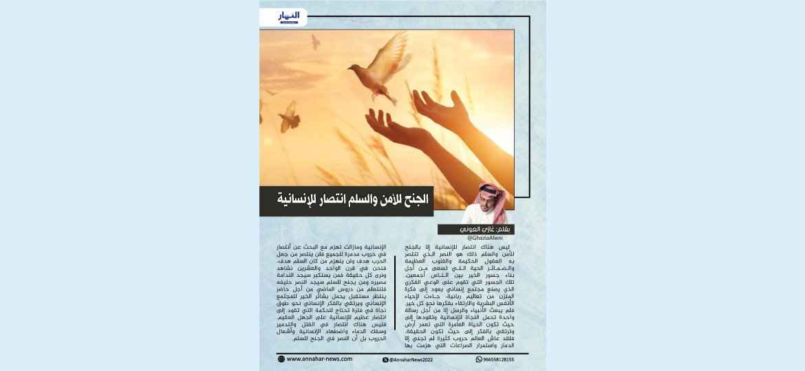 فليس هناك انتصار في القتل والتدمير وسفك الدماء واضطهاد الإنسانية وأشعال الحروب بل أن النصر في الجنح للسلم.