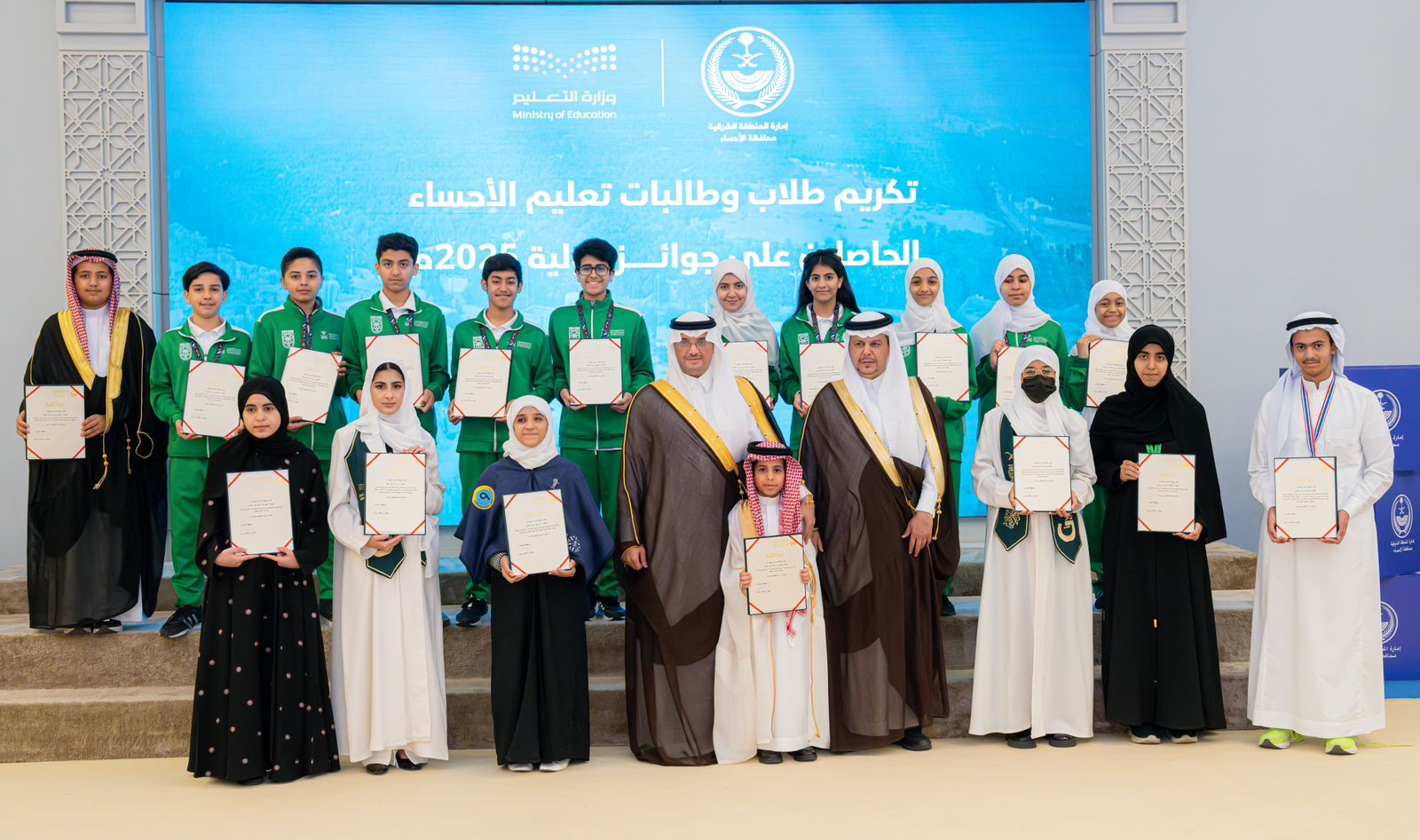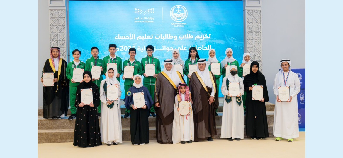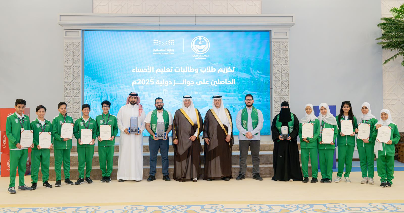 وهنأ سموّه 18 طالبًا وطالبة حققوا جوائز دولية وخليجية في عددٍ من المسابقات العلمية التي يأتي أبرزها: الأولمبياد الدولي الثاني للرياضيات، والمستثمر الذكي الخليجي، ومسابقة تحدي الإلقاء، ومعرض جنيف الدولي للاختراعات في دورته الـ 50، وبطولة فيكس العالمية للروبوتات 2025 (فئة المرحلة الابتدائية)، معبّرًا عن فخره بهذه الإنجازات التي تعكس جودة التعليم في المحافظة.