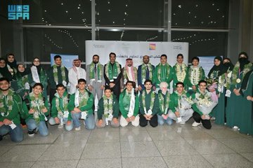 حظي المنتخب السعودي للعلوم والهندسة باستقبال حافل في مطار الملك خالد الدولي بالرياض، لدى عودته إلى أرض الوطن، بعد مشاركته المتميزة في معرض ريجينيرون الدولي للعلوم والهندسة "آيسف 2025"، الذي أقيم في مدينة كولومبوس بولاية أوهايو الأمريكية خلال الفترة من (10) إلى (16) مايو الجاري.