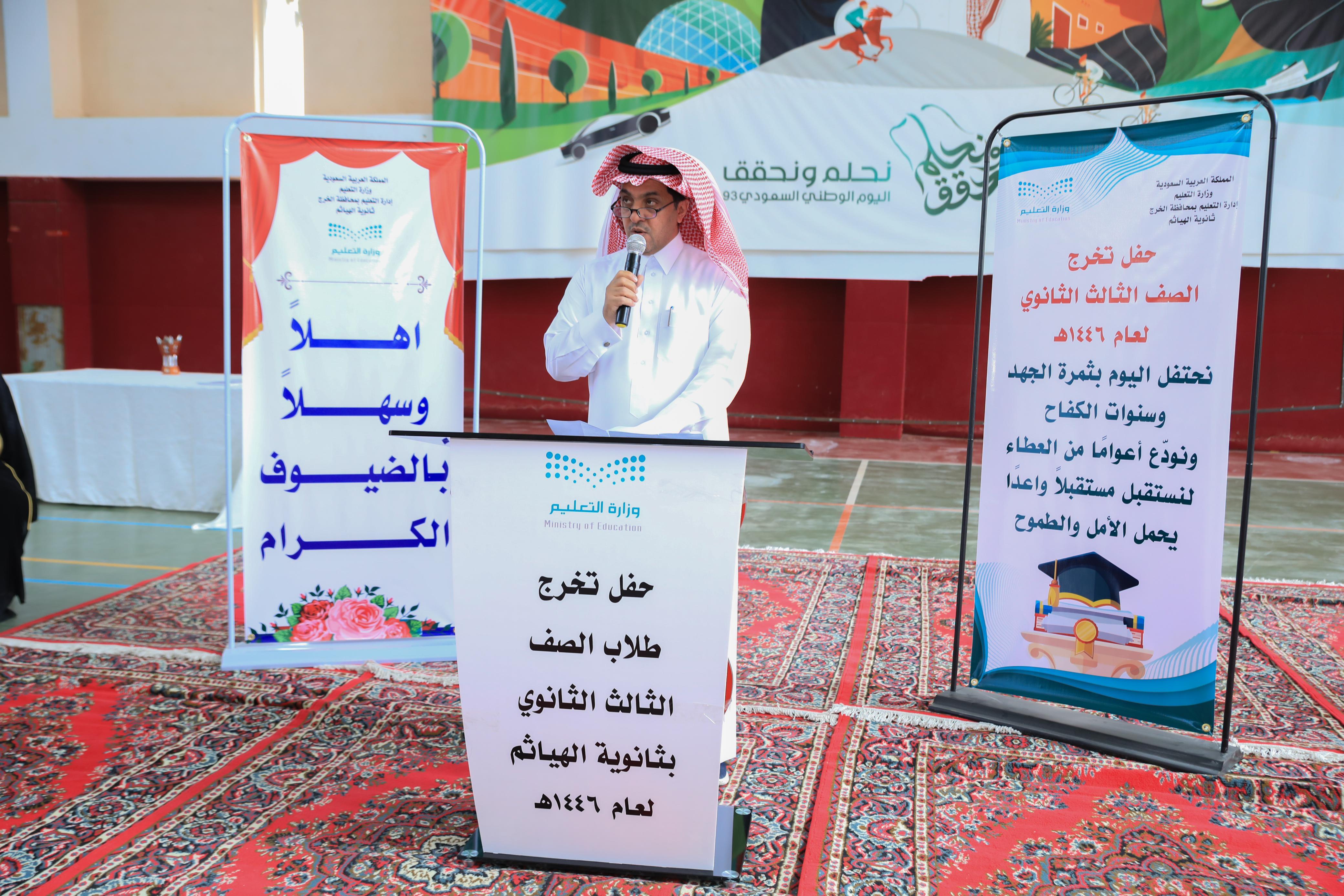 نظّمت  مدرسة الهياثم الثانوية  حفل تخرج طلاب الصف الثالث الثانوي، في مناسبة جسّدت حصاد أعوام من الجهد والمثابرة، وذلك بحضور عدد من أولياء الأمور والمعلمين والضيوف، جاء الحفل ليؤكد التزام المدرسة برسالتها التربوية، ومساهمتها في إعداد جيل واعٍ يسهم في بناء المستقبل وتحقيق تطلعات الوطن.