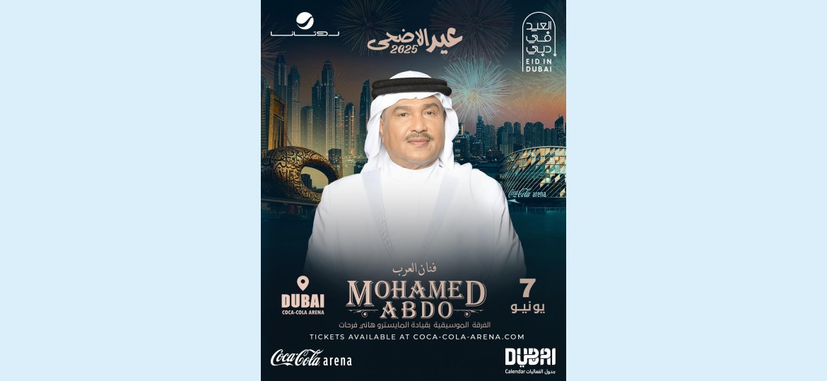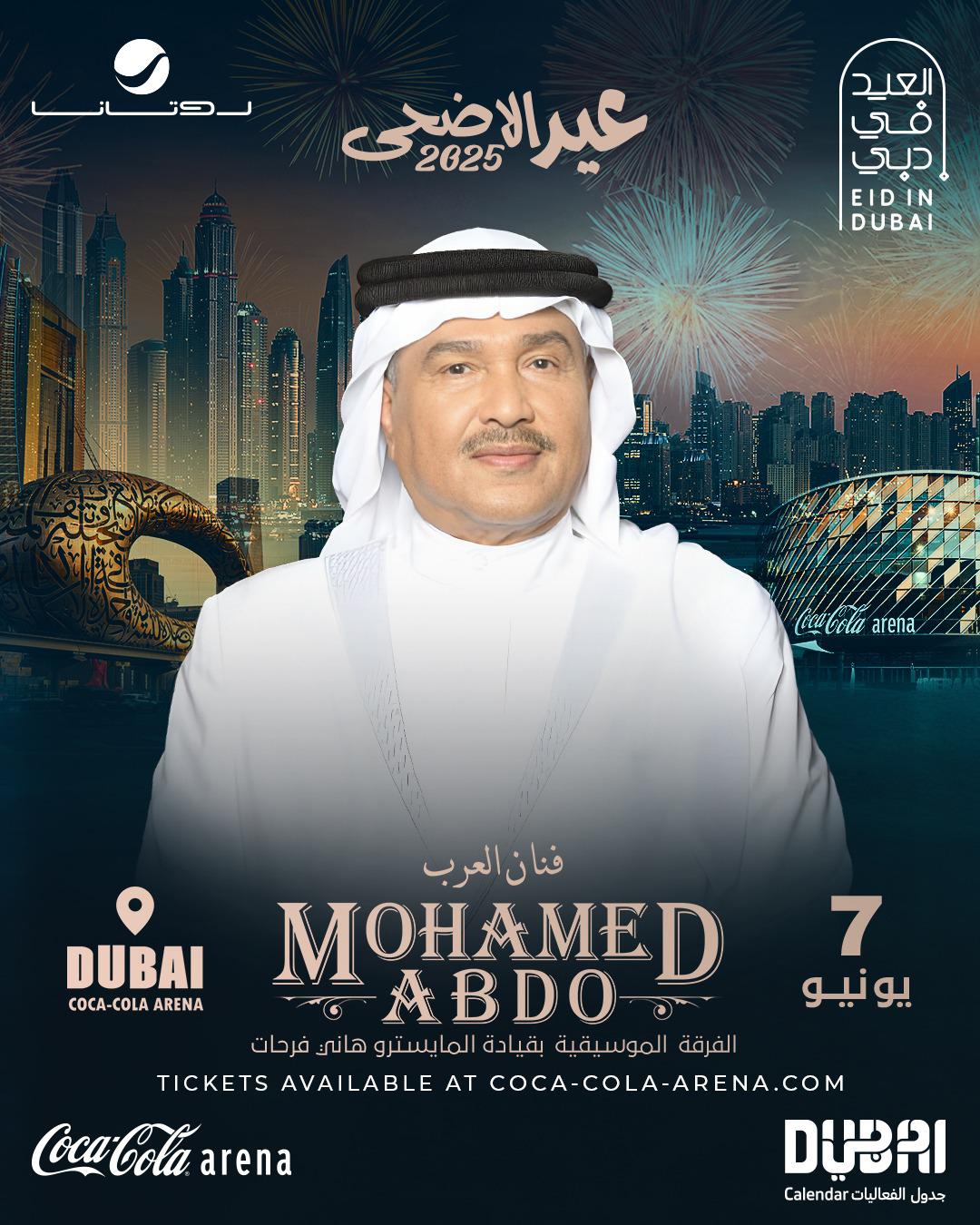 اما في دبي، سيكون الجمهور الخليجي والعربي على موعد مع الطرب والأصالة وليلة من العمر تنظمها روتانا ويحيها محمد عبده يوم 7 يونيو بقاعة "كوكا كولا ارينا" ويأتي الحفل متزامنا مع صدور البوم "فنان العرب" الجديد "احد سأل عني 2025 وفاء للبدر" حيث يتضمن خمسة اغاني جميعها من كلمات الأمير الراحل بدر بن عبد المحسن، والحان الموسيقار طلال ، ويتوقع ان يفاجئ فنان العرب جمهوره ويغني من جديده.