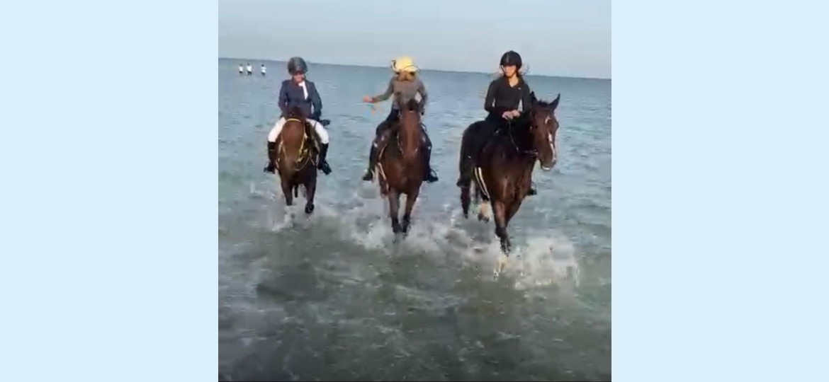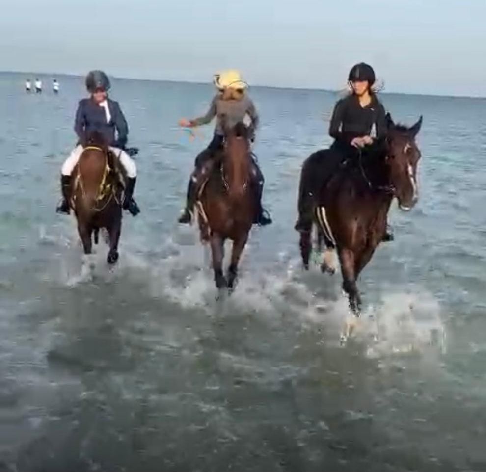 أيضاً تم الذهاب بالخيول للبحر لإضفاء متعة أكثر والتأمل والاسترخاء.