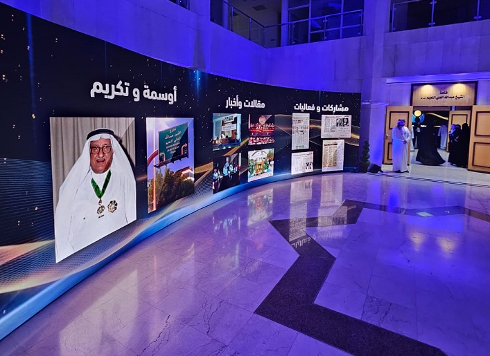 كما صاحب الحفل 3 معارض معرض تقني تفاعلي يوثق مسيرته الوطنية، إضافة إلى معرض مقتنياته الشخصية، من أبرزها “وسام الملك عبد العزيز من الدرجة الممتازة” الذي ناله تقديرًا لعطائه للوطن، ومعرض وثائق وصور نادرة توثق محطات من حياته العملية، ورسم تفاعلي حي خلال الحفل.