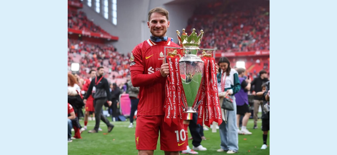 النجم الأرجنتيني أليكسيس ماك أليستر، بطل العالم مع "التانغو" في مونديال قطر 2022، احتفل أمس الأحد مع ناديه ليفربول بالتتويج رسمياً بلقب الدوري الإنجليزي الممتاز على ملعب "أنفيلد"، رغم تعادل الفريق (1-1) مع كريستال بالاس. أليكسيس خاض 30 مباراة في موسم اللقب، وكان أحد الركائز الأساسية في خط الوسط منذ انضمامه قادماً من برايتون.