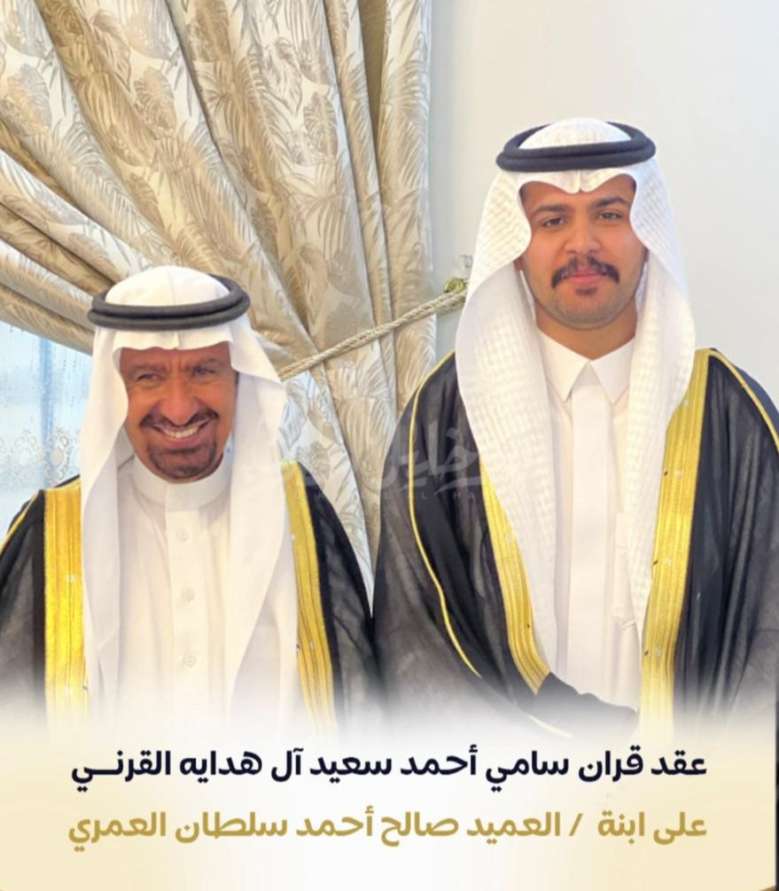 احتفل الشيخ أحمد سعيد آل هداية القرني بزواج نجله الشاب سامي بن سعيد القرني من كريمة العميد صالح بن أحمد آل سلطان العمري وذلك في قاعة آل سلطان بالاصفا