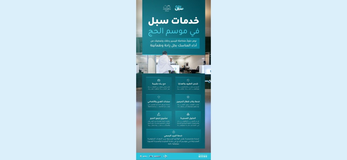 تواصل  مؤسسة البريد السعودي  | سبل تعزيز دورها الريادي كمشغل وطني وممكن لوجستي وجيومكاني في خدمة ضيوف الرحمن، مستندة إلى خبرات ميدانية تراكمية وقدرات تشغيلية مدعومة بأعلى معايير الكفاءة والجاهزية. وفي هذا الإطار، تقدم "سبل" منظومة متكاملة من الخدمات النوعية المصممة بعناية لتيسير رحلة الحجاج ودعم تجربتهم الإيمانية بمستوى عالٍ من الاحترافية والجودة، بما يتماشى مع مستهدفات رؤية المملكة 2030 في تطوير قطاع الحج والعمرة.