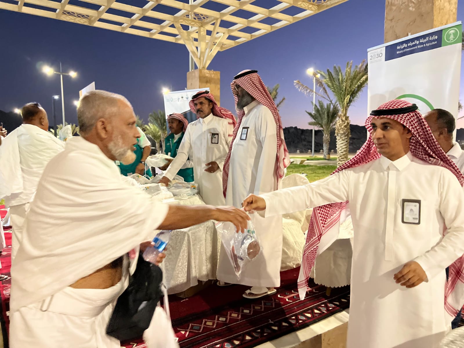 نفذ مكتب وزارة البيئة والمياه والزراعة بمحافظة الجموم مبادرة أهلاً بضيوف الرحمن تحت عنوان “أنورت” بالتعاون مع عدد من الجهات الحكومية والجمعيات الخيرية بالمحافظة. وتهدف المبادرة إلى استقبال ضيوف الرحمن والترحيب بهم، حيث جرى توزيع 100 وجبة على الحجاج، إلى جانب تقديم نبذة تعريفية عن دور وزارة البيئة والمياه والزراعة والخدمات التي توفرها للحجاج في المشاعر المقدسة ومحافظات المنطقة خلال موسم الحج.