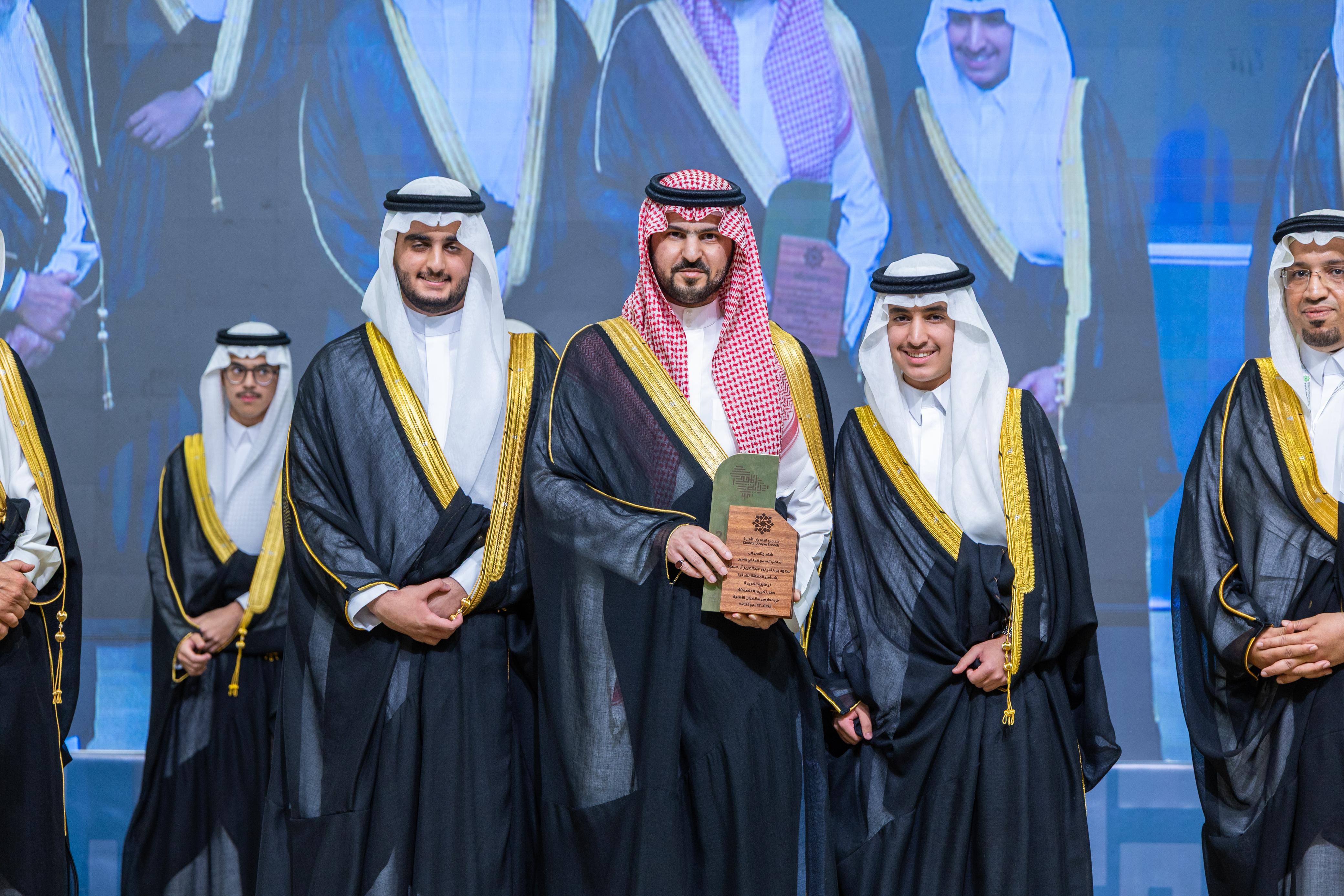 عقب ذلك، كرم سموه خريجي الدفعة، إلى جانب تكريم شركاء النجاح، وفي مقدمتهم شركة أرامكو السعودية وإدارة تعليم الشرقية.