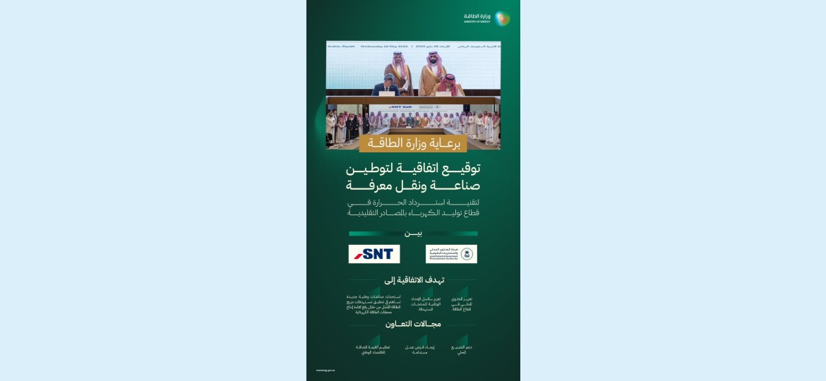 برعاية وزارة الطاقة، وقّعت هيئة المحتوى المحلي والمشتريات الحكومية اتفاقية تعاون مع شركة SNT، بهدف توطين صناعة ونقل المعرفة لتقنية استرداد الحرارة في قطاع توليد الكهرباء بالمصادر التقليدية.