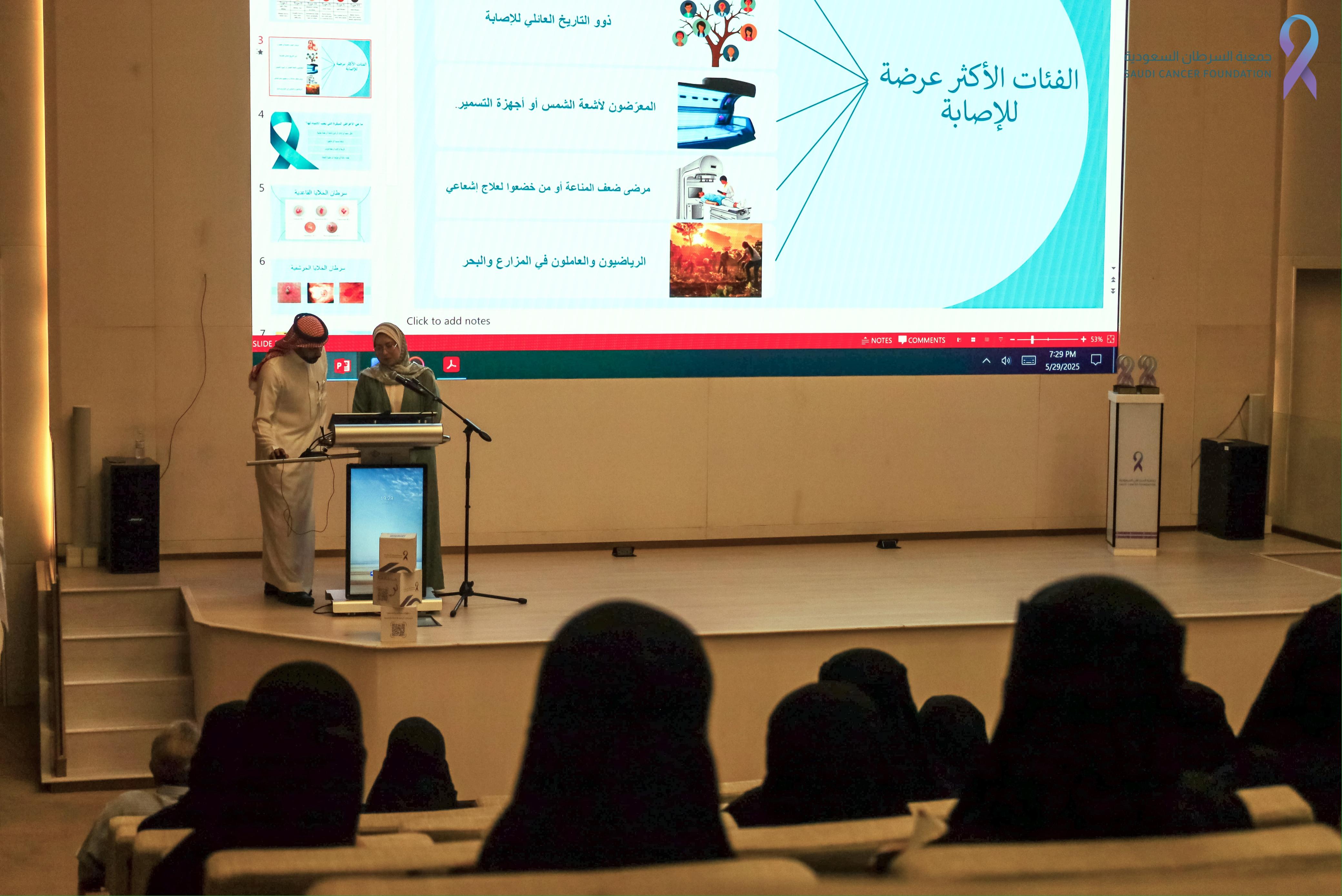 نظمت جمعية السرطان السعودية بالمنطقة الشرقية محاضرة تفاعلية تحت عنوان "حمايتك وقايتك"، وذلك تزامنا مع الشهر التوعوي عن سرطان الجلد بالتعاون مع مستشفيات المانع بالخبر