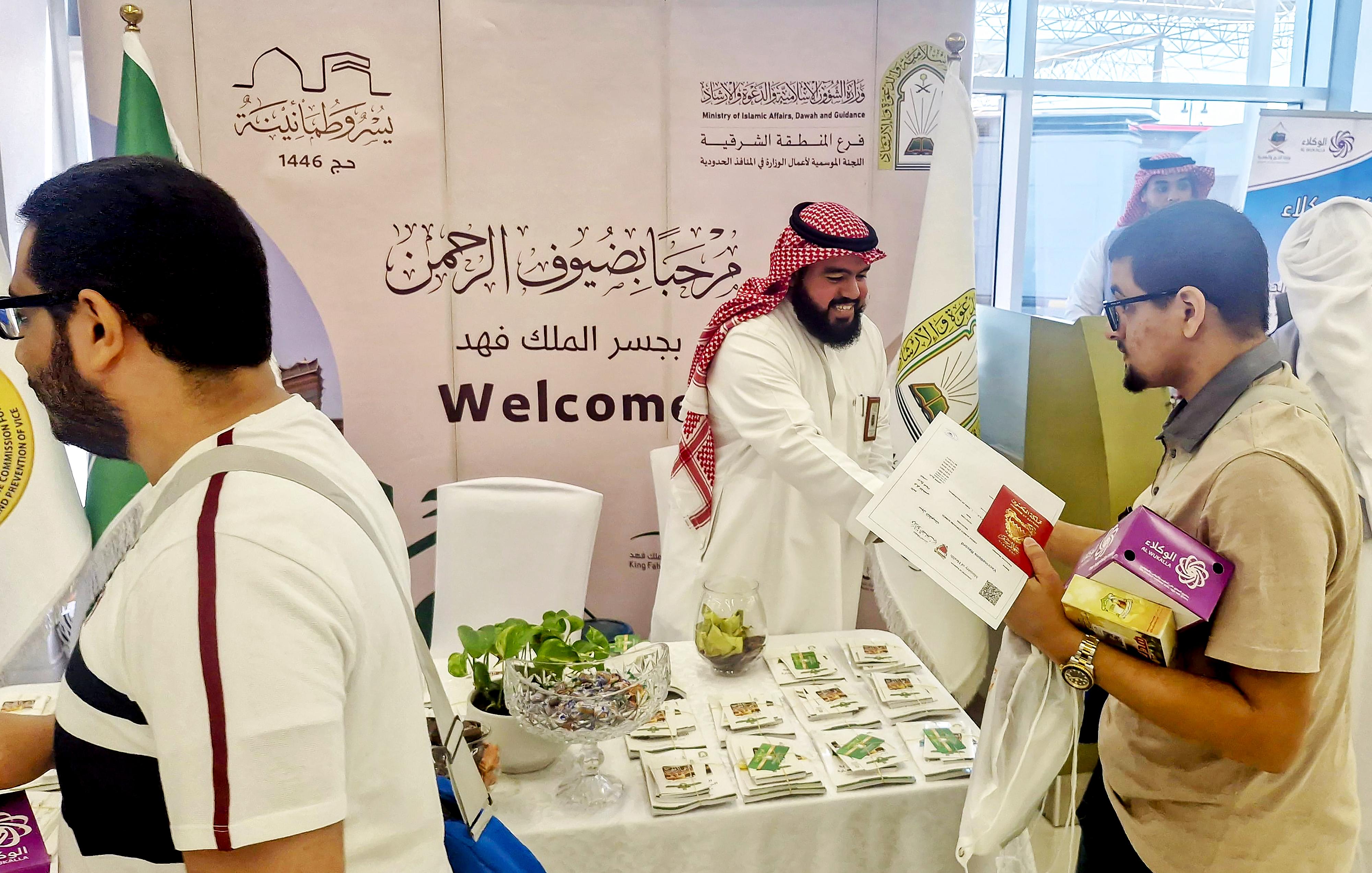 وزارة الشؤون الإسلامية والدعوة والإرشاد، عبر فرعها في المنطقة الشرقية، تقديم خدماتها التوعوية والدعوية المتكاملة لحجاج بيت الله الحرام والمصلين القادمين من مملكة البحرين عبر منفذ جسر الملك فهد، وذلك ضمن خطتها الموسمية الشاملة الهادفة لتعزيز الوعي الشرعي وتيسير أداء المناسك على ضيوف الرحمن.