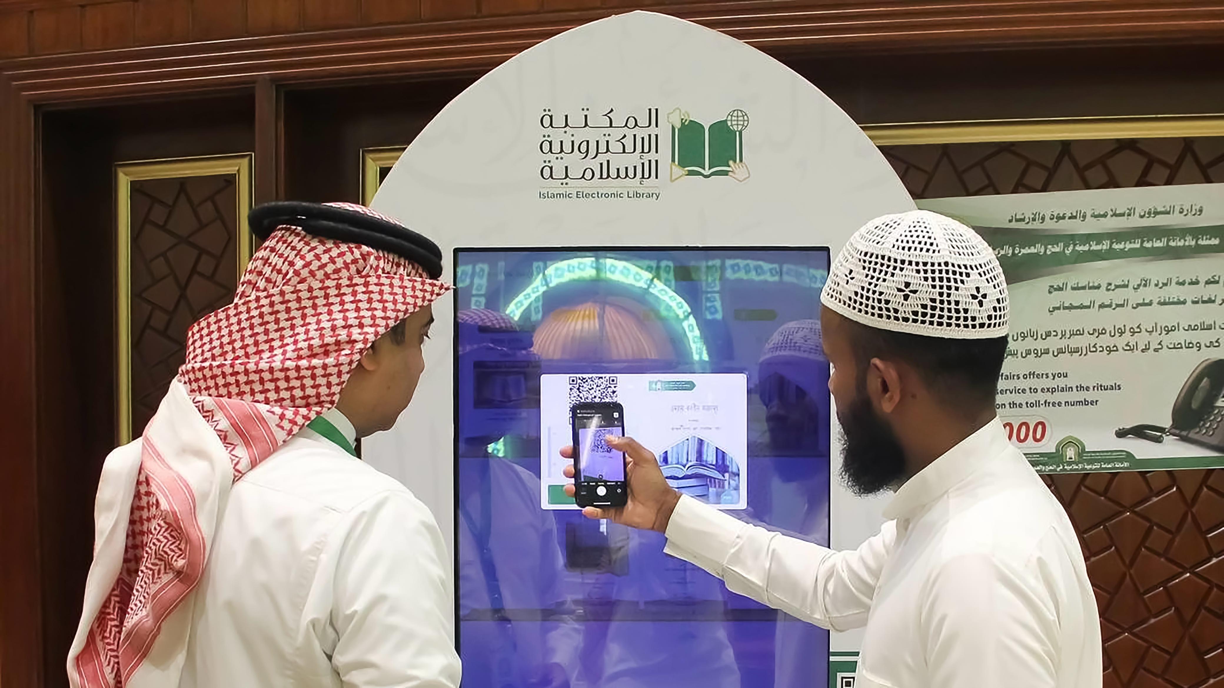 وفي إطار التحول الرقمي الذي تتبناه الوزارة، تم تفعيل شاشة تفاعلية مرتبطة بالمكتبة الإسلامية الإلكترونية، التي تضم أكثر من 1000 مادة علمية بـ51 لغة، إلى جانب 2000 شريحة إرشادية.