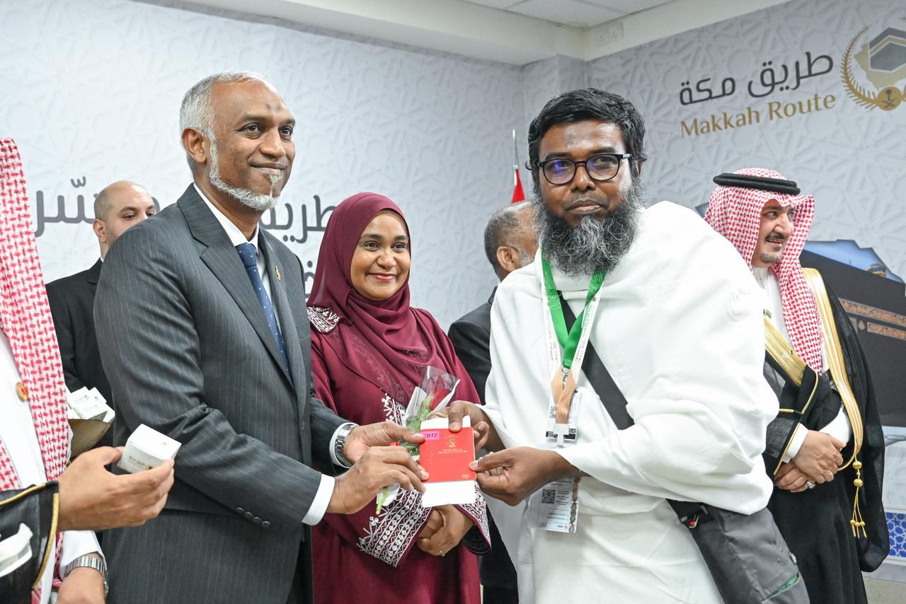 وشهد رئيس دولة  المالديف  الدكتور محمد معز أثناء تدشين مبادرة طريق مكة توديع أول فوج من حجاج   المالديف  بعد تسلمهم بطاقات نسك قبل مغادرتهم البلاد لأداء نسك الحج .