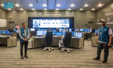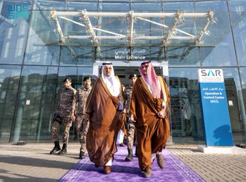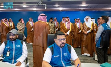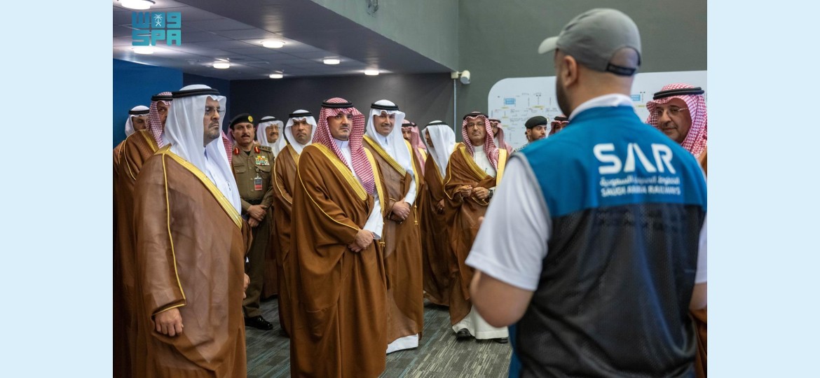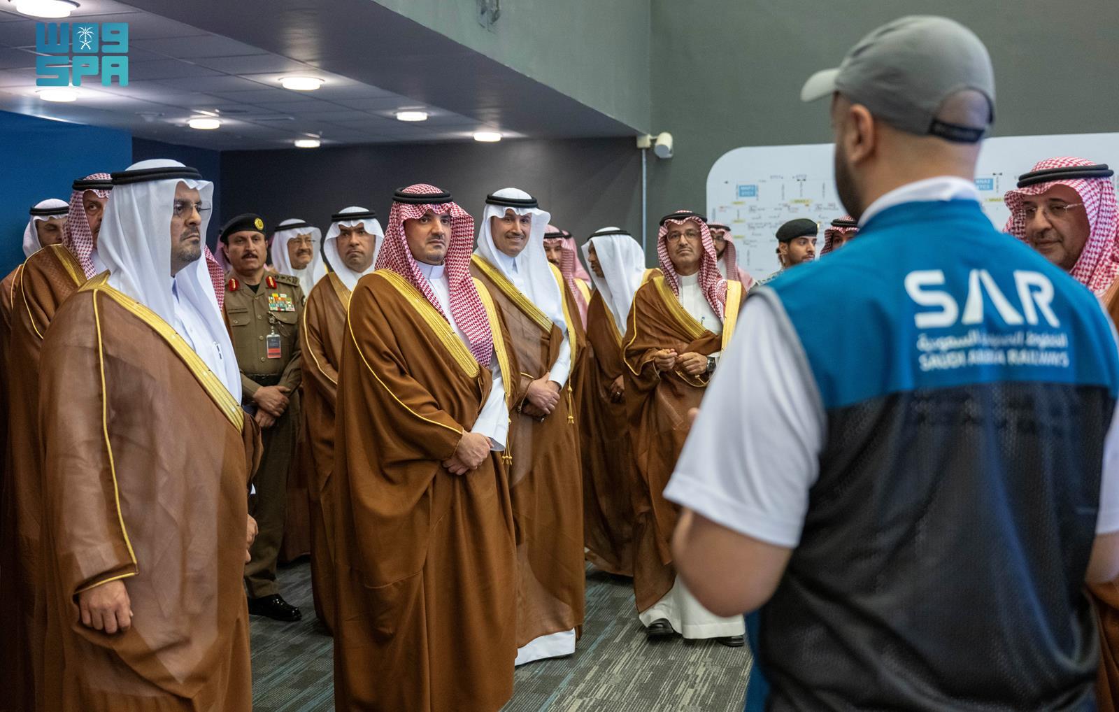 تابع صاحب السمو الملكي الأمير عبدالعزيز بن سعود بن نايف بن عبدالعزيز وزير الداخلية رئيس لجنة الحج العليا رئيس مجلس إدارة الهيئة العليا للأمن الصناعي، اليوم، سير العمل في مركز العمليات والتحكم بقطار المشاعر المقدسة في مشعر عرفات.
