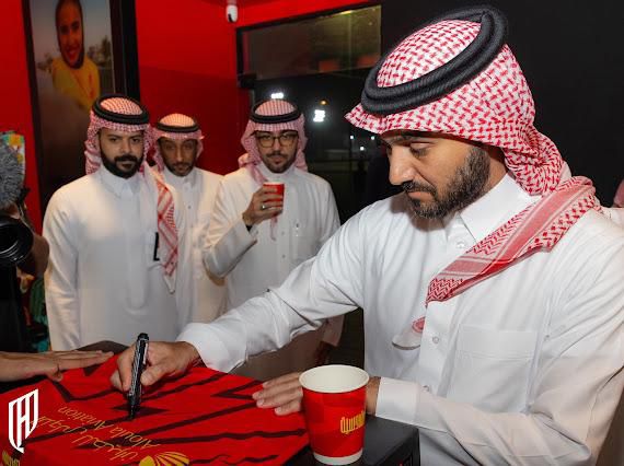 وحرص الأمير عبدالعزيز بن تركي على زيارة متجر النادي والتوقيع على قميص القادسية، وإلتقاط الصور التذكارية.