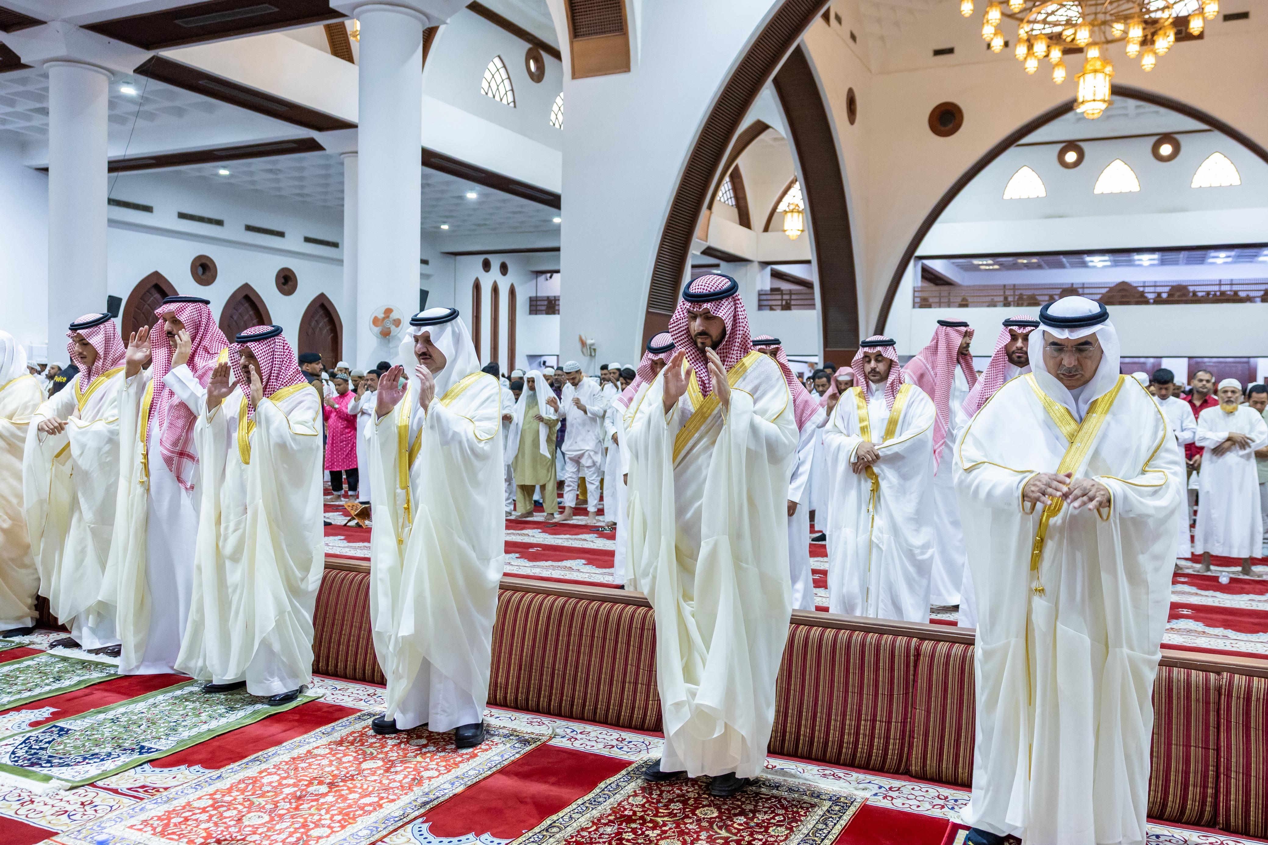 أدى صاحب السمو الملكي الأمير سعود بن نايف بن عبدالعزيز، أمير المنطقة الشرقية، وصاحب السمو الملكي الأمير سعود بن بندر بن عبدالعزيز، نائب أمير المنطقة الشرقية، صباح اليوم الجمعة، صلاة عيد الأضحى المبارك مع جموع المصلين، وذلك في جامع خادم الحرمين الشريفين بمدينة الدمام.