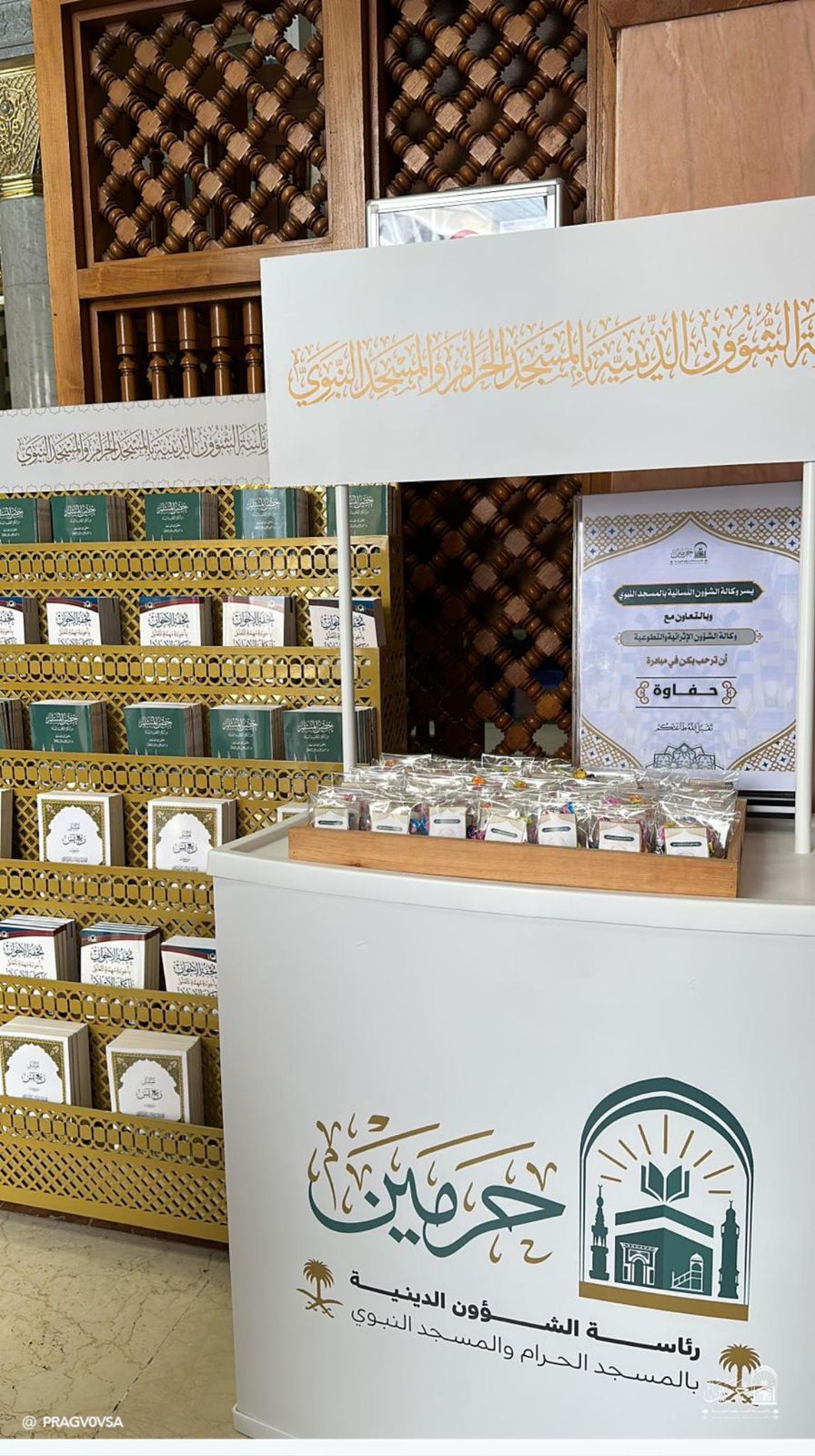 أطلقت وكالة الشؤون الدينية النسائية بالمسجد النبوي بالتعاون مع وكالة الشؤون الإثرائية والتطوعية برئاسة الشؤون الدينية بالمسجد النبوي مبادرة (حفاوة)؛ والتي تهدف إلى الارتقاء بتجربة ضيوف الرحمن من خلال استقبال الزائرات في يوم العيد؛ حيث تم إعداد ركن يحتوي على هدايا وكتيبات وضيافة لاستقبال ضيوف الرحمن من زائرات المسجد النبوي.