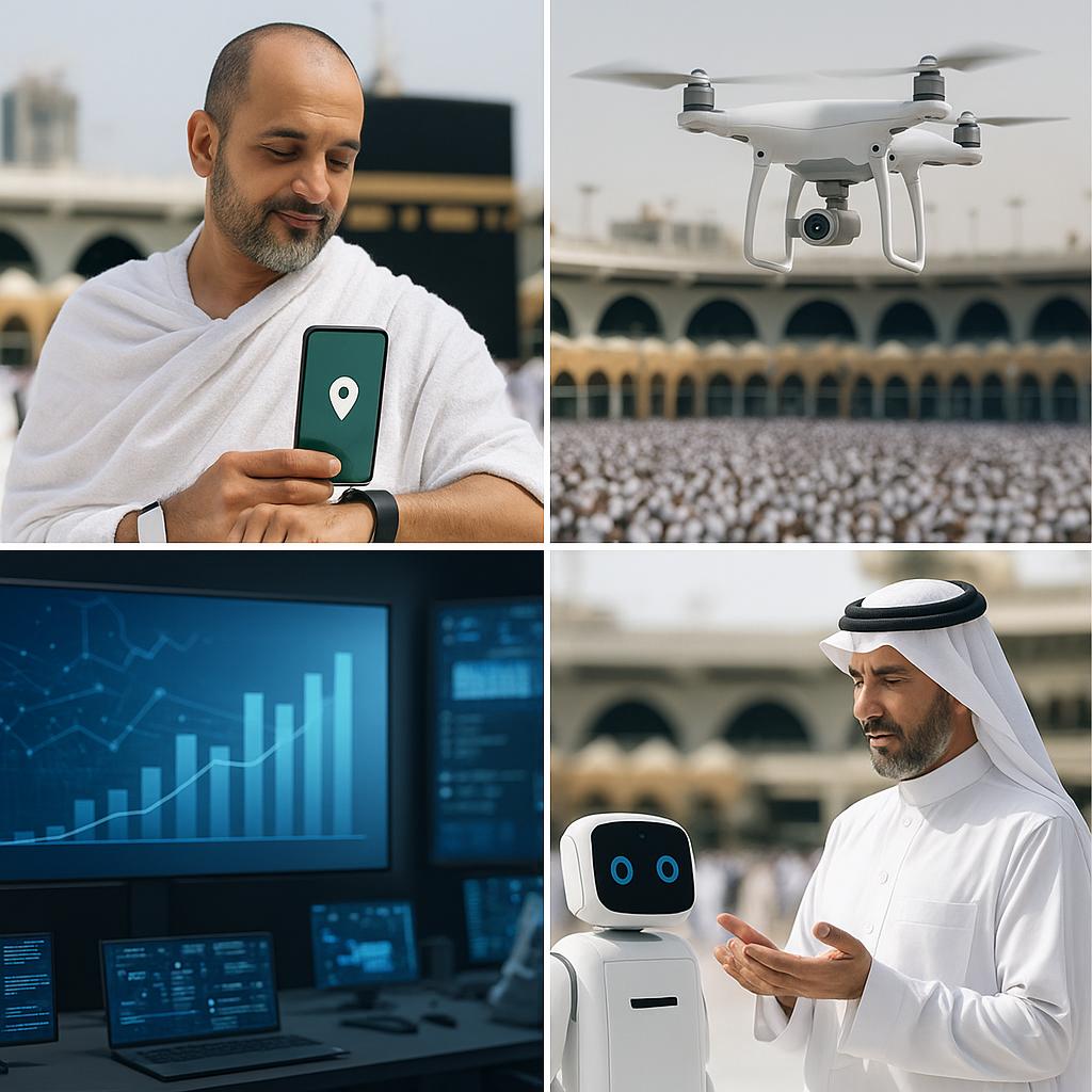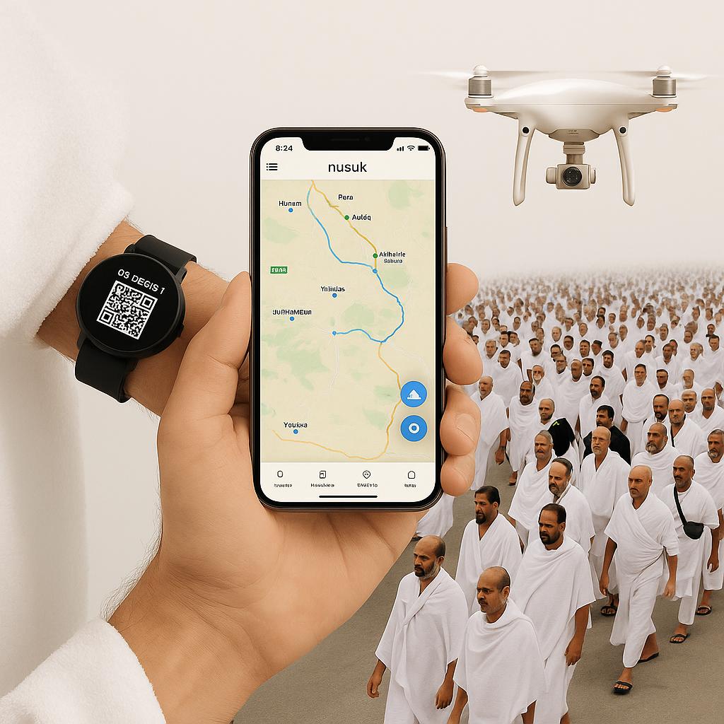 جهّزت وزارة الحج والعمرة الحجاج بأساور إلكترونية ذكية مرتبطة بهويتهم الرقمية، تحفظ البيانات الصحية، وتُمكّن من تحديد الموقع الجغرافي والتواصل مع فرق الإنقاذ عند الحاجة (وزارة الحج والعمرة، 2025).