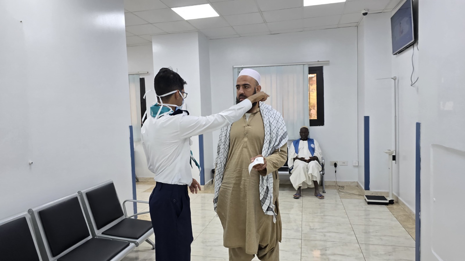 كما يسهم الفتية والشباب في تقديم الدعم والمساعدة للزوار المرضى داخل المستوصفات الصحية المحيطة بالمسجد النبوي، ضمن جهود متكاملة تهدف إلى تعزيز راحتهم وسلامتهم بعد أداء مناسكهم، في صورة تجسّد معاني التطوع والانتماء الوطني.