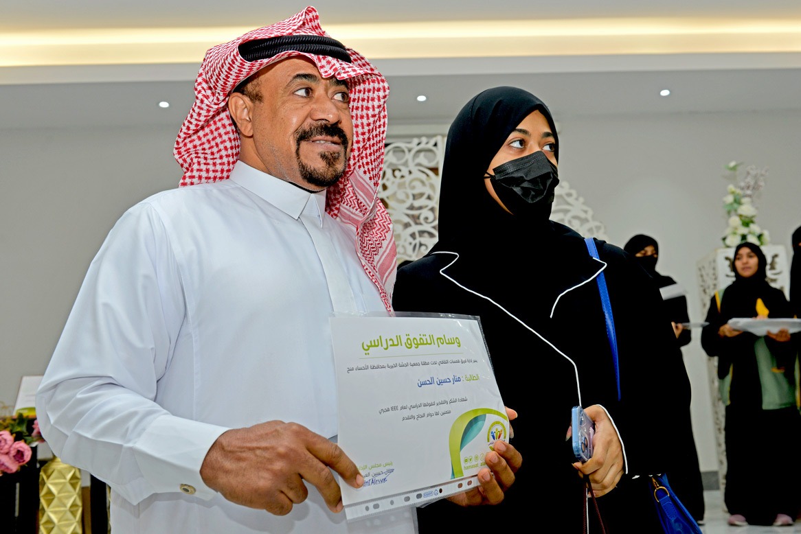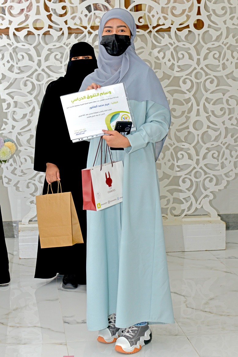 وفي ختام الحفل كرمت الاستاذة ماجدة محمد عضو هيئة الصحفيين بالاحساء المتفوقين ، والمتميزين بالعمل التطوعي .
