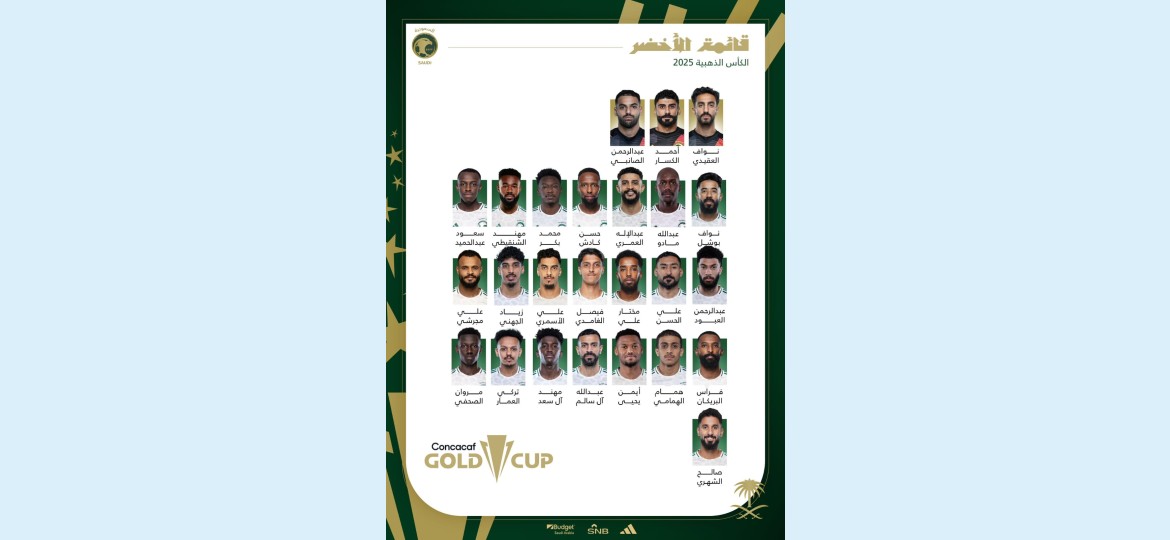 أعلن المدير الفني للمنتخب الوطني إيرڤي رينارد عن قائمة الأخضر المشاركة في الكأس الذهبية 2025 ( كونكاكاف) التي ستقام خلال الفترة 14 يونيو 2025 وحتى 6 يوليو 2025 في الولايات المتحدة الأمريكية.