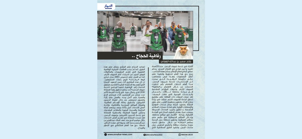 هذا العام لاحظت الاهتمام بأمر تجاوزت الخدمات، من خلال الاهتمام ب"رفاهية" الضيوف الكرام، وتحولت المشاعر المقدسة إلى بيئة مختلفة تلألأت بالجمال والخدمات النوعية التي فاقت الوصف..