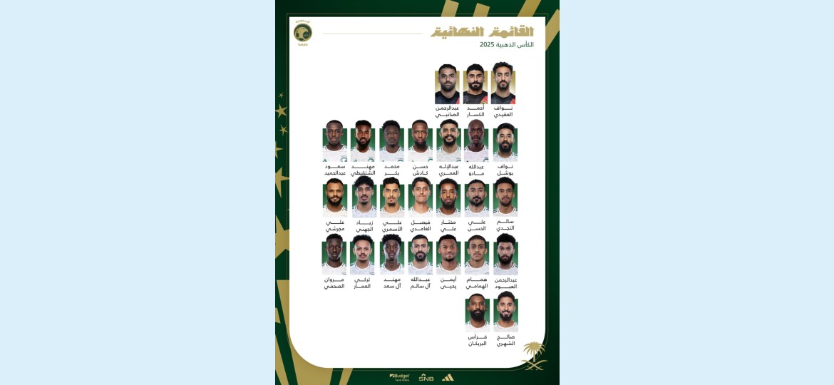 اعتمدت اللجنة المنظمة في بطولة الكأس الذهبية 2025 قائمة لاعبي المنتخب السعودي الأول المكونة من 26 لاعب.
